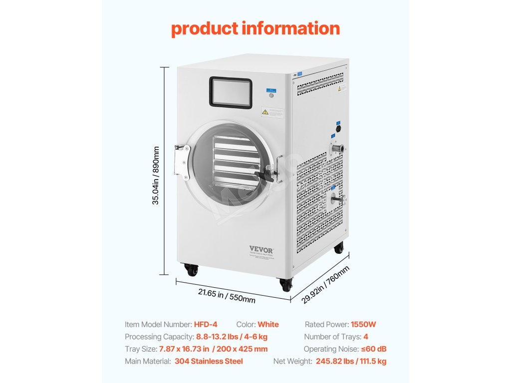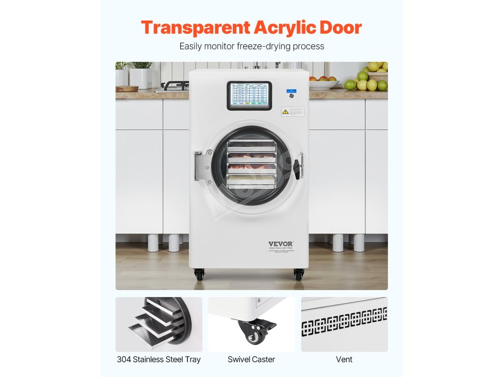 Táto lyofilizačná sušička s veľkou kapacitou 8,8-13,2 libier (4-6 kg) využíva na uchovanie potravín technológiu vákuového lyofilizovania. V porovnaní s metódami sušenia na vzduchu a dehydratácie sa pri lyofilizácii zachováva farba, aróma, chuť, štruktúra a výživové hodnoty potravín v ich prirodzenom stave.