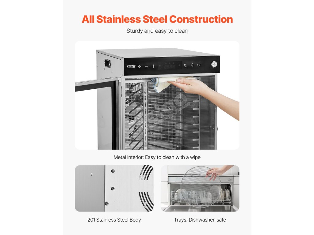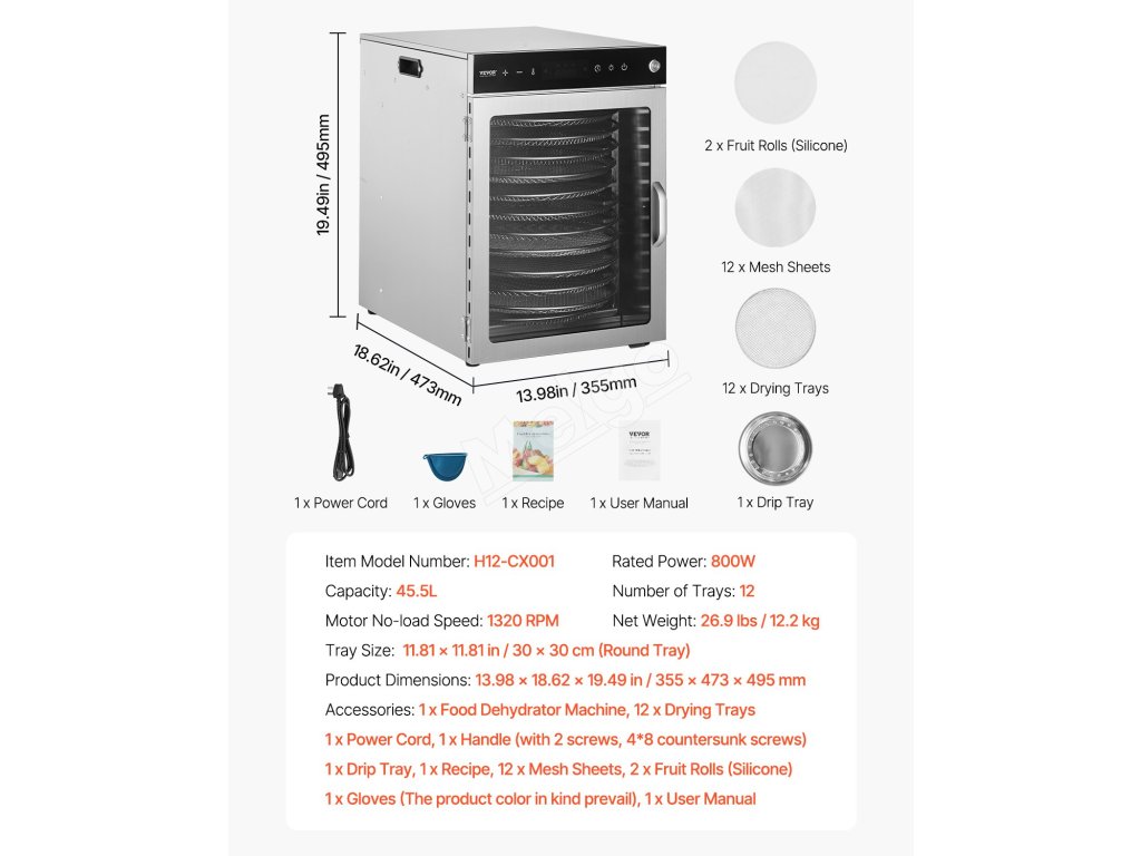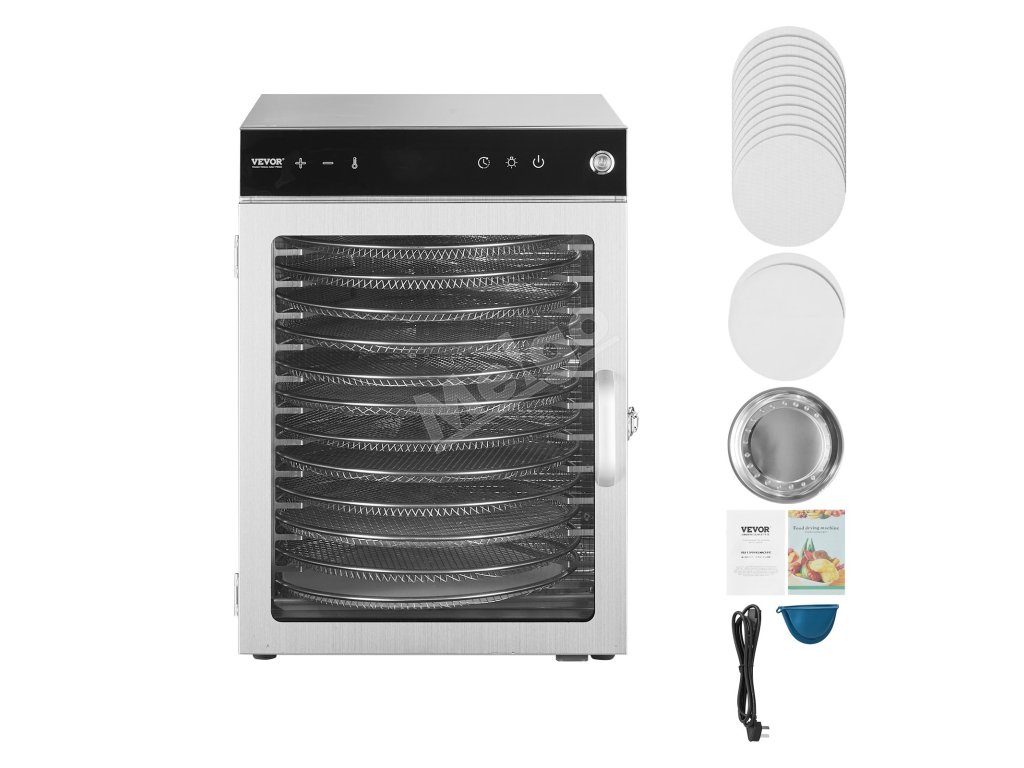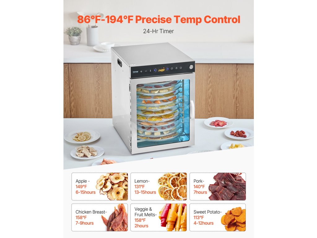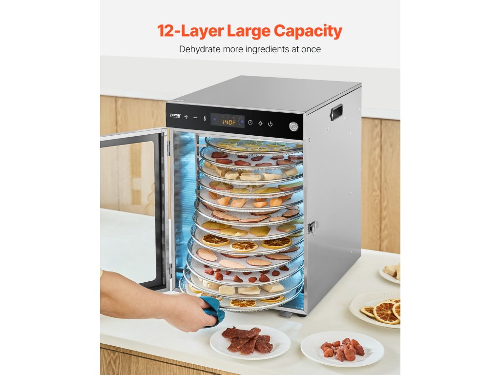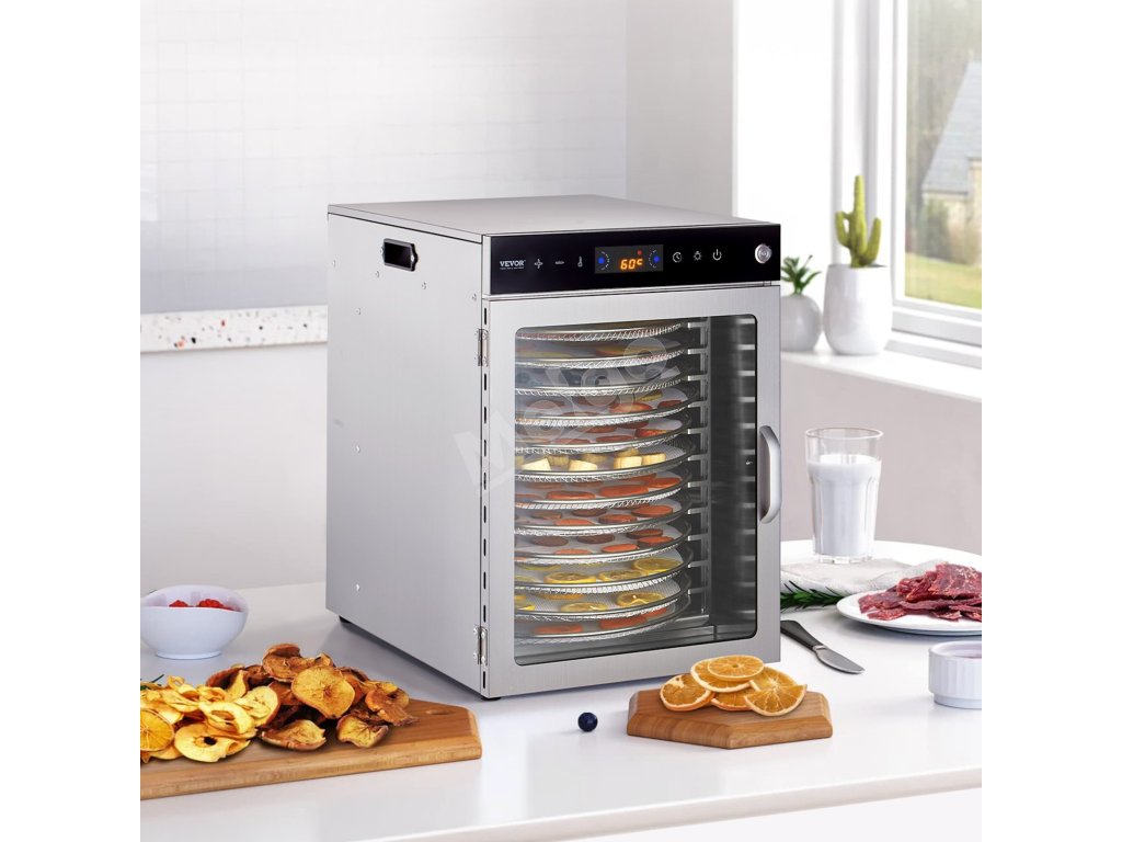 Vďaka kapacite 12 vrstiev je tento veľký sušič stroj ideálny na sušenie rôznych surovín vrátane ovocia, zeleniny, sušeného mäsa, byliniek, morských plodov, obilnín a ďalších. Dodáva sa aj s receptom, čo vám umožní ľahko pripraviť rôzne zdravé, domáce sušené potraviny.