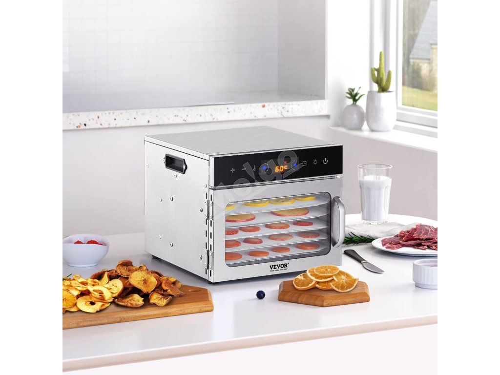 Sušička potravín 6 nerez. tácok 400W, nast. teplota, 24h časovač