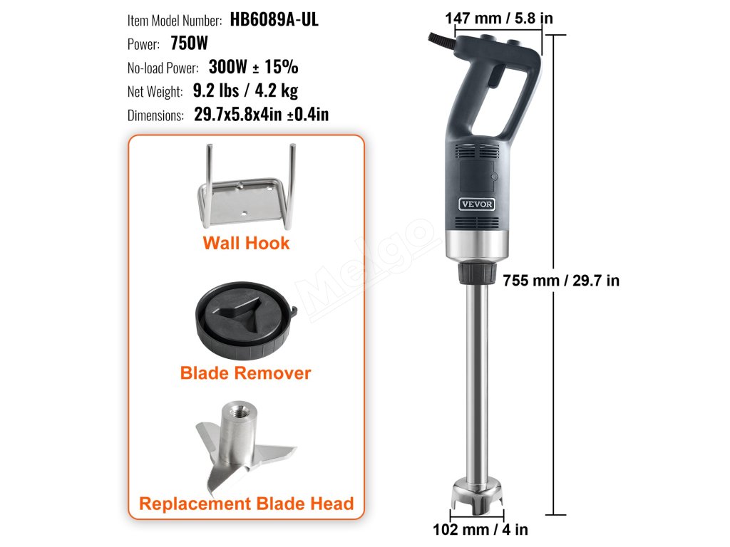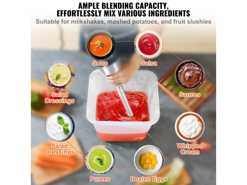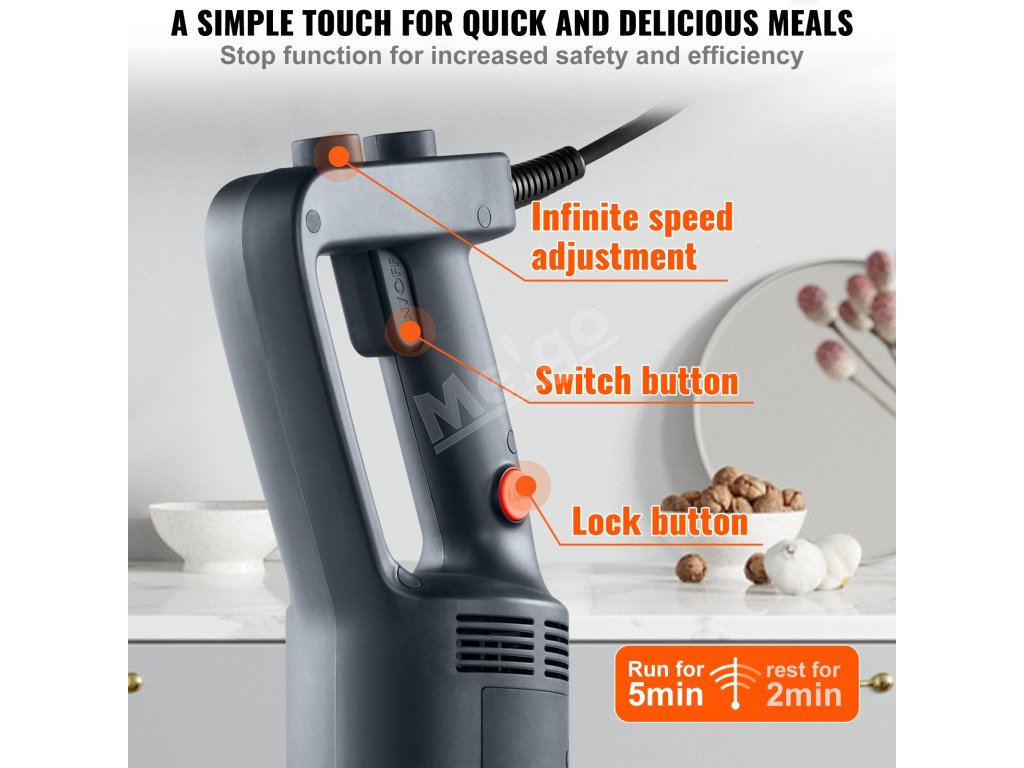 Ponorný ručný mixér 750 Watt, nastaviteľná rýchlosť, 304 nerez čepeľ