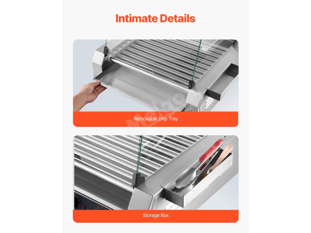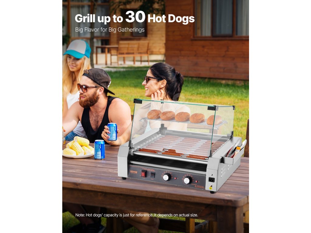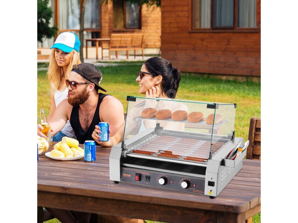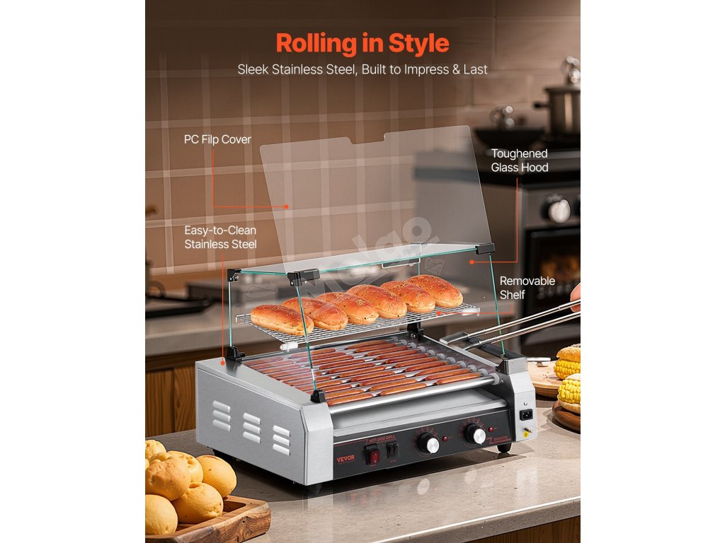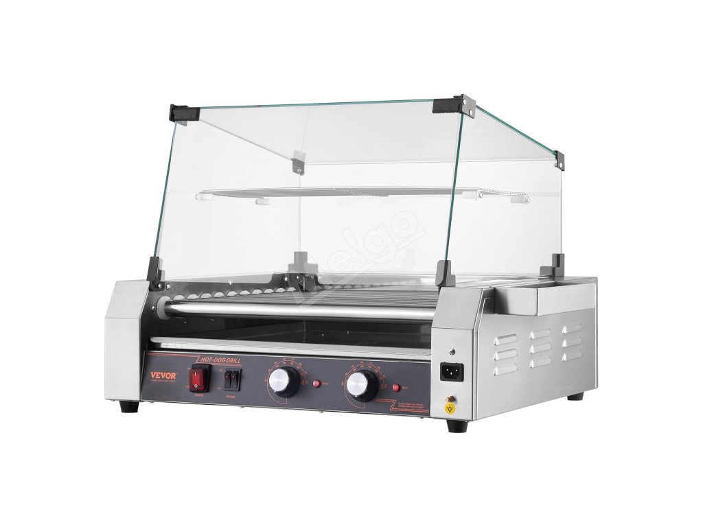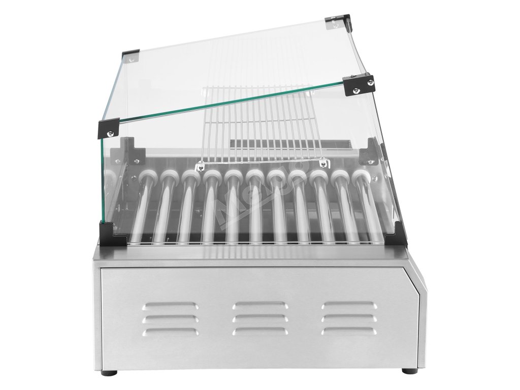 Valčekový gril na párky 30 ks, 11 valčekov, nerez, 2200W s krytom