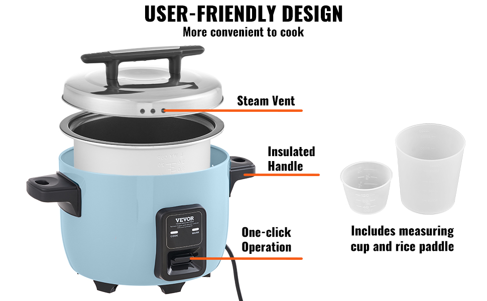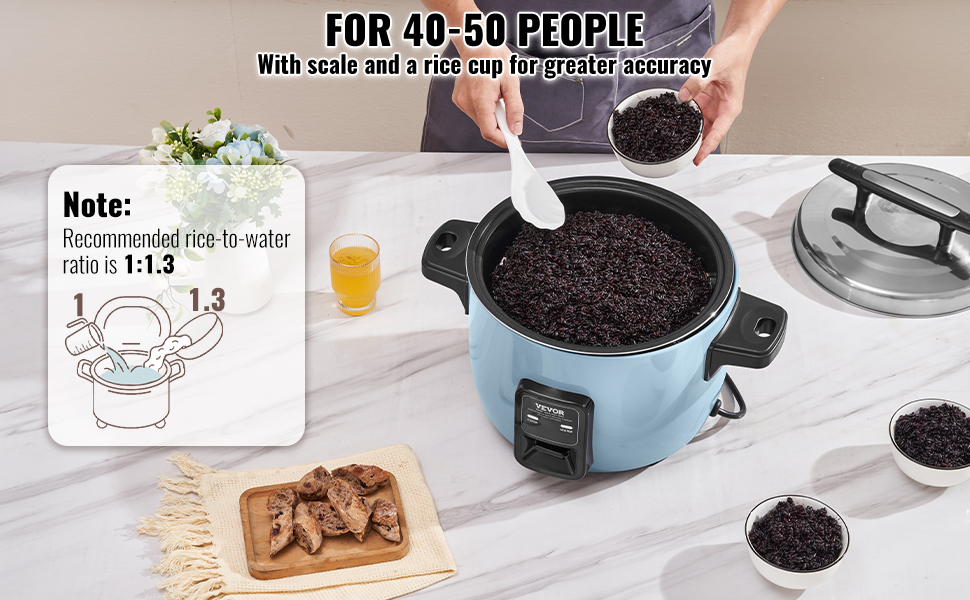 Tento komerčný ryžovar je vybavený riadkami so stupnicou a pohárom na ryžu, čo vám uľahčí presné odmeranie a varenie podľa vašich potrieb. Stačí pridať vodu do vnútorného hrnca, prikryť a stlačiť a môžete variť dokonalú ryžu a zrná počas celého dňa.