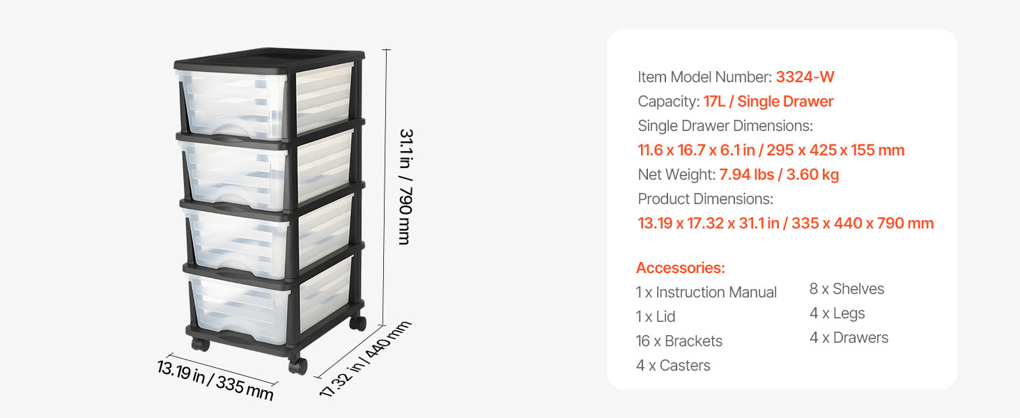 | Rozmery jednej zásuvky | 11.6 x 16,7 x 6,1 palca / 295 x 425 x 155 mm |