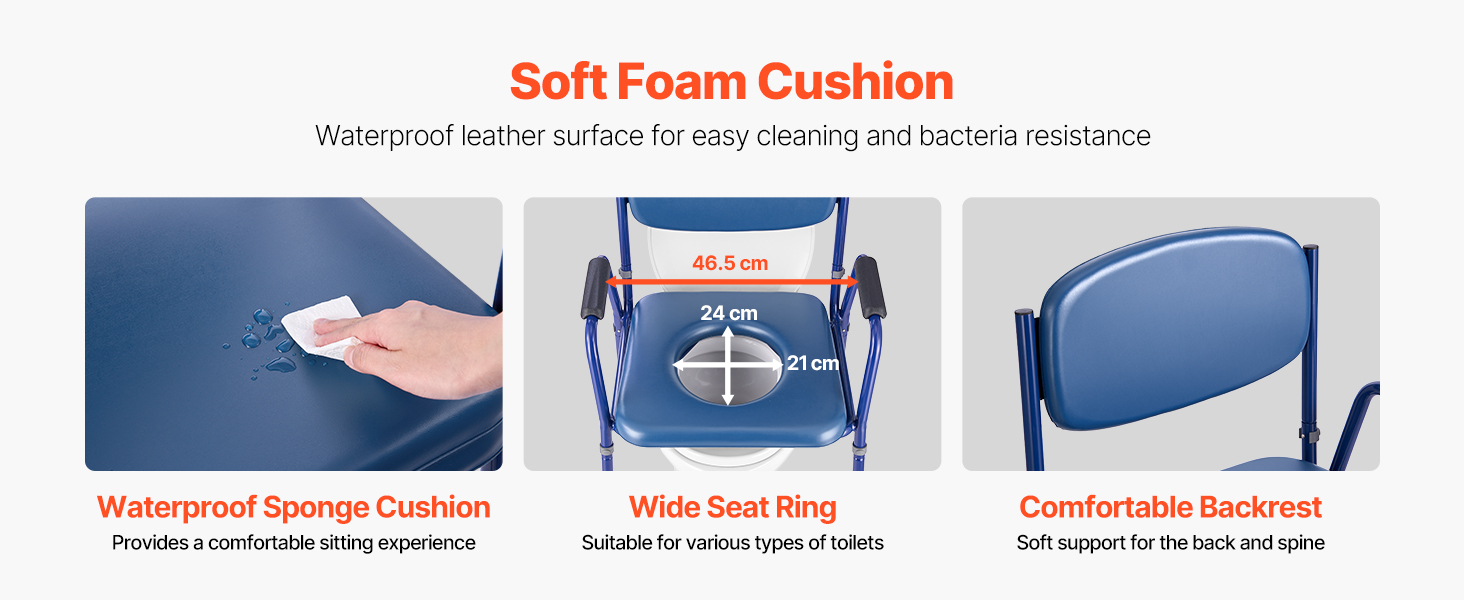 Naša nočná komoda je vybavená sedadlom, prstencom a operadlom z hrubej vysokoodolnej peny pre lepšiu oporu a pohodlie. Je potiahnutá vodeodolnou kožou, ktorá sa ľahko čistí.