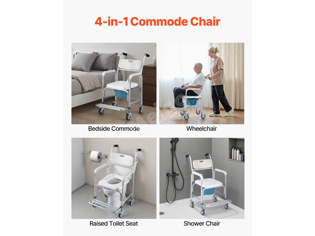 Funguje ako nočná komoda pri posteli, invalidný vozík, vyvýšené záchodové sedadlo alebo sprchovacia stolička. Spoľahlivé riešenie osobnej starostlivosti, ktoré zabezpečuje pohodlnú a dostupnú toaletu pre osoby s obmedzenou pohyblivosťou.