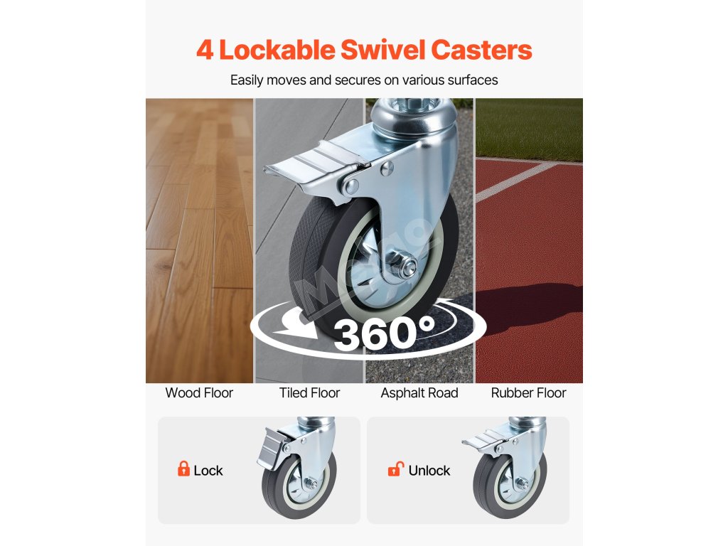 Táto nočná komoda vybavená 3,9-palcovými veľkými otočnými kolieskami sa bez námahy pohybuje po drevených, dlaždicových a gumových podlahách. Všetky štyri kolieska sú vybavené blokovacími brzdami na bezpečné umiestnenie počas používania.