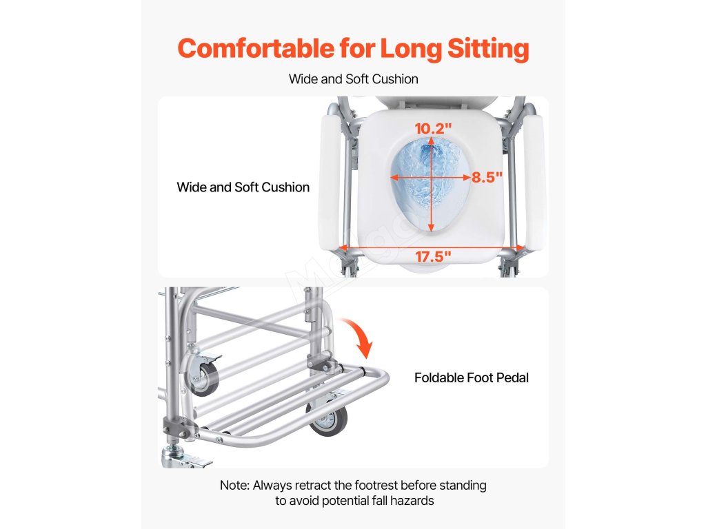 Súčasťou nášho nočníka pre dospelých je odnímateľné 5l vedro s vekom, ktoré zabraňuje úniku vody a zápachu. Dá sa ľahko odpojiť a vyčistiť, čím sa komoda udržiava svieža a hygienická.