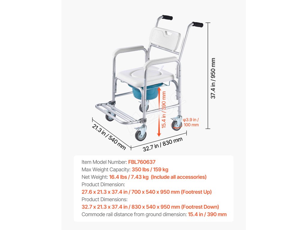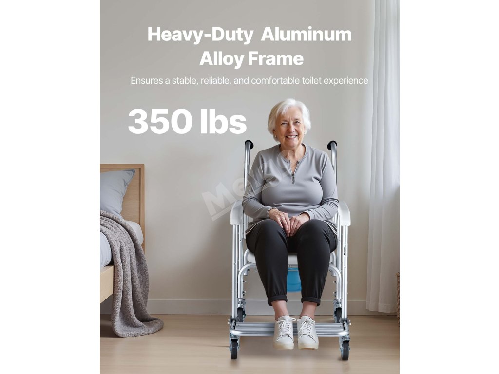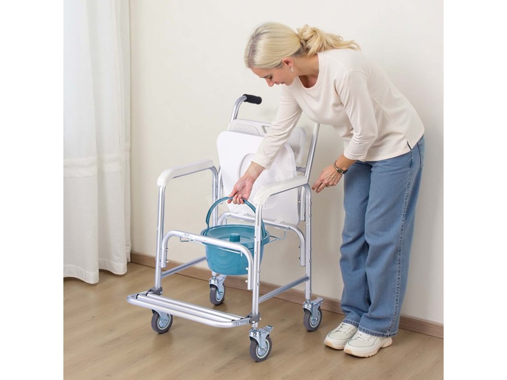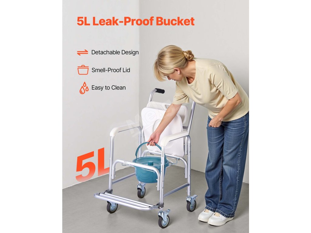 Toaletná stolička na kolieskach 159 kg, 4 v 1, odnímateľné 5L vedro