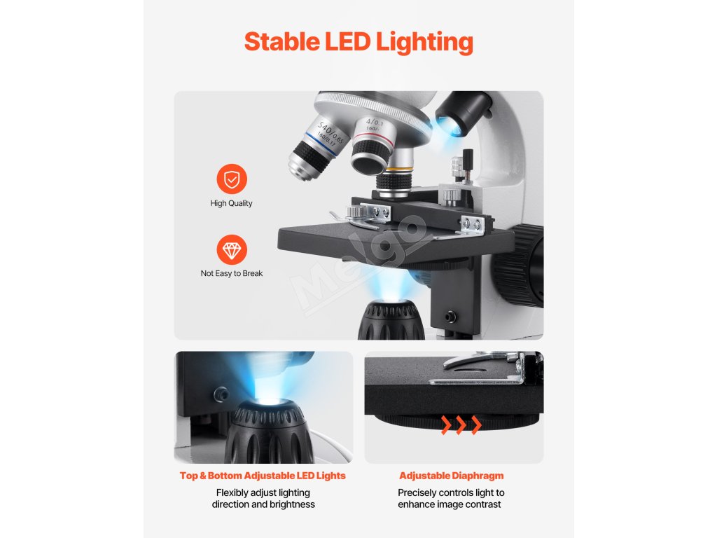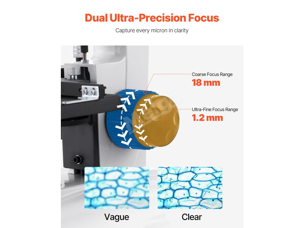 Vybavený hrubým zaostrením 18 mm a jemným zaostrením 1,2 mm v kombinácii s LED svetelným zdrojom a kondenzátorom zachytáva tento mikroskop každý mikrón detailu a poskytuje úžasne jasné obrazy.