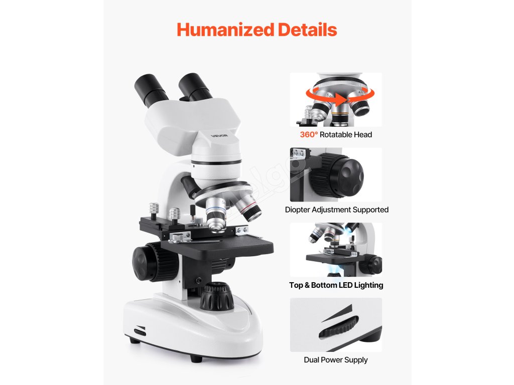 S rozsahom zväčšenia od 40X do 2000X tento mikroskop využíva pokročilú zobrazovaciu technológiu, aby zabezpečil, že každá úroveň zväčšenia poskytuje jasné a detailné obrazy, čo vám umožňuje preskúmať mikroskopický svet zblízka.