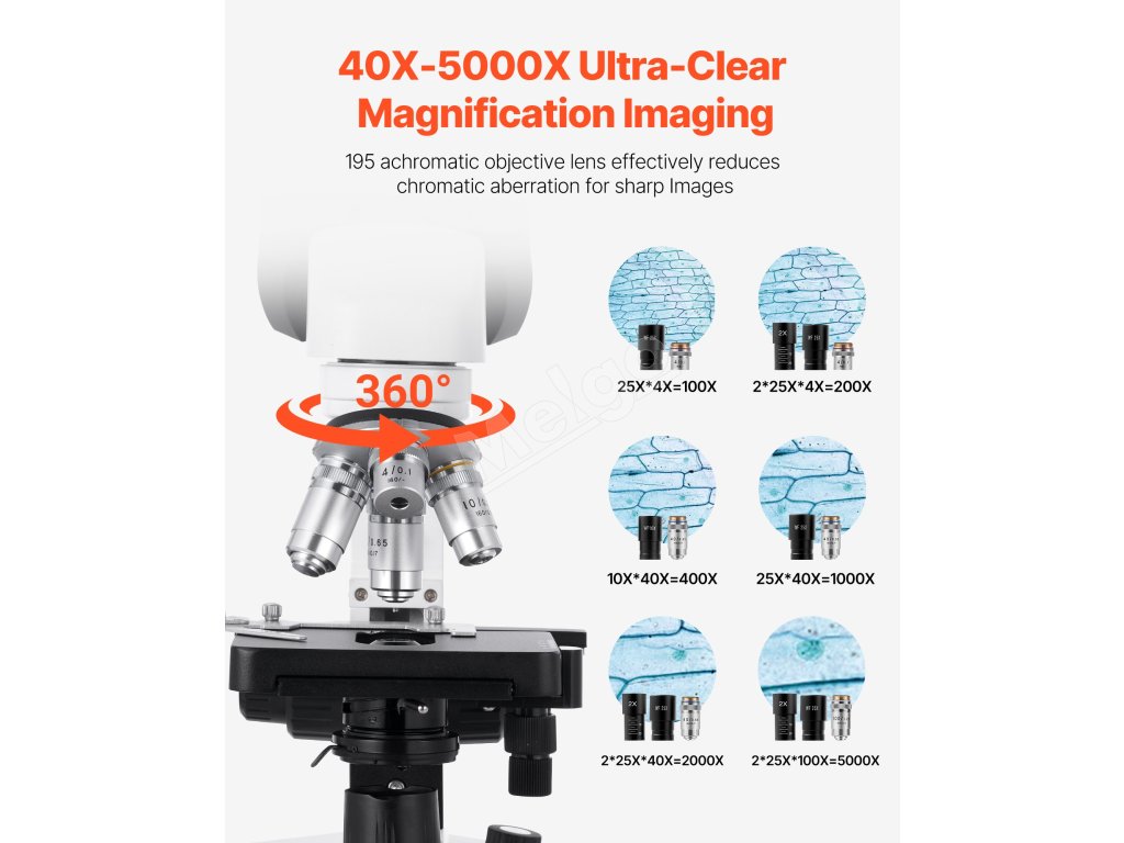 Tento mikroskop s rozsahom zväčšenia od 40X do 5000X využíva pokročilú zobrazovaciu technológiu, ktorá zabezpečuje, že každá úroveň zväčšenia poskytuje jasné a detailné snímky, čo vám umožňuje preskúmať mikroskopický svet zblízka.