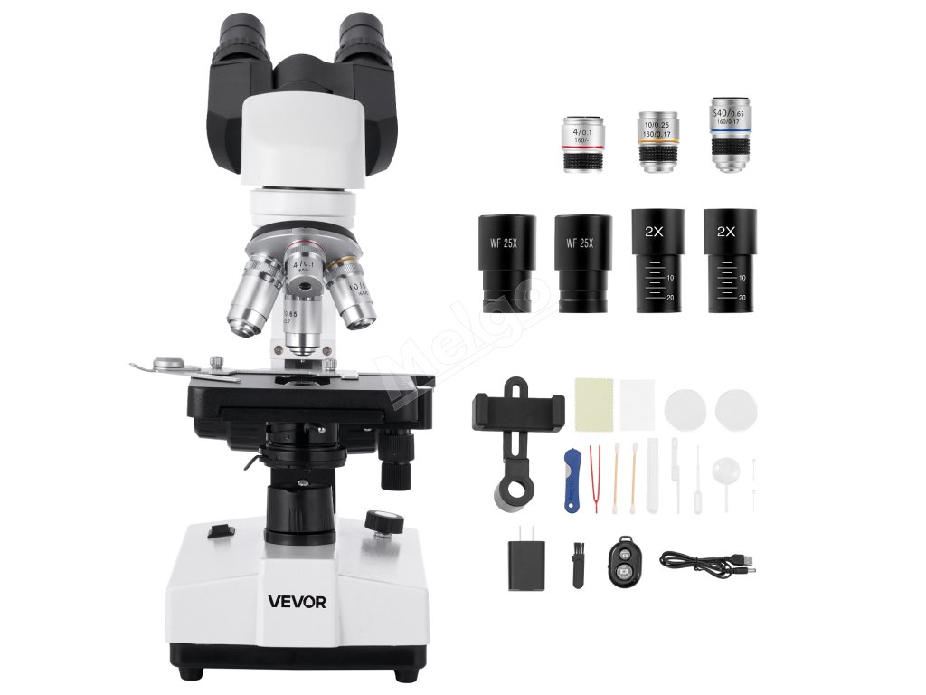 Binokulárny zložený mikroskop 40–5000× 2 okuláre, led, držiak telefónu
