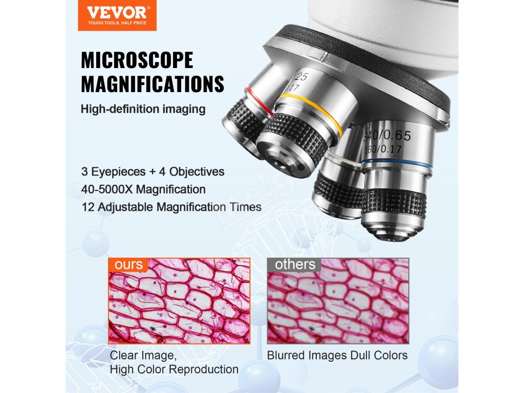 Trinokulárny mikroskop 40×–2500× led osvetlenie, externé rozhranie