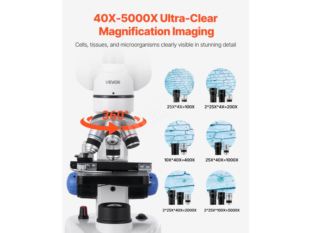 Tento mikroskop s rozsahom zväčšenia od 40X do 5000X využíva pokročilú zobrazovaciu technológiu, ktorá zabezpečuje, že každá úroveň zväčšenia poskytuje jasné a detailné snímky, čo vám umožňuje preskúmať mikroskopický svet zblízka.