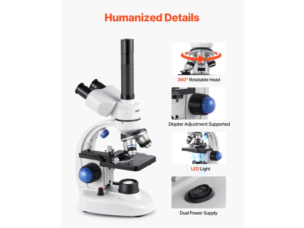 Tento mikroskop je vybavený 18 mm hrubým zaostrovaním a 1,2 mm jemným zaostrovaním v kombinácii so zdrojom svetla LED a kondenzátorom, vďaka čomu zachytí každý mikrónový detail a poskytuje úžasne jasné snímky.