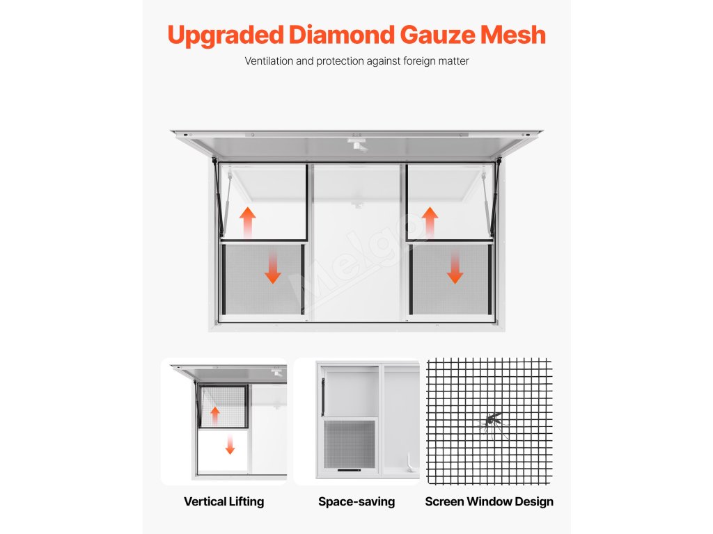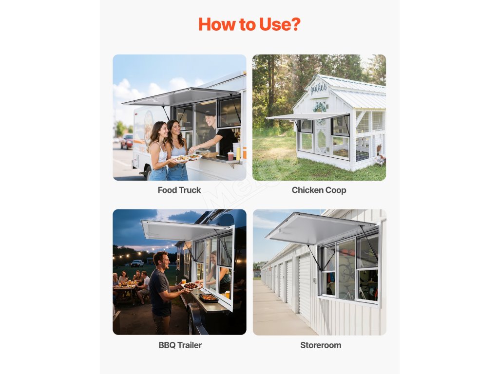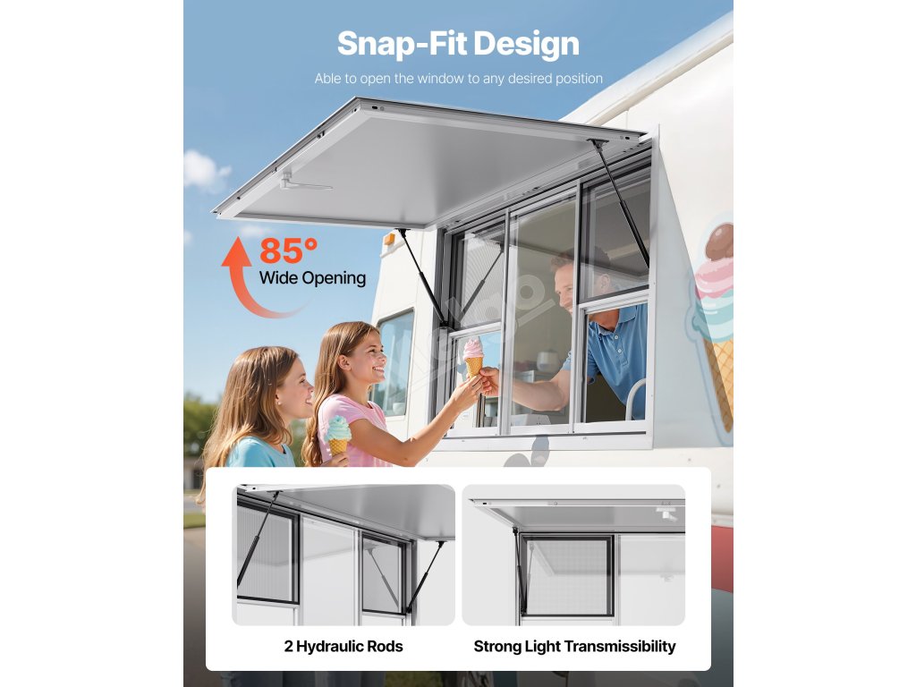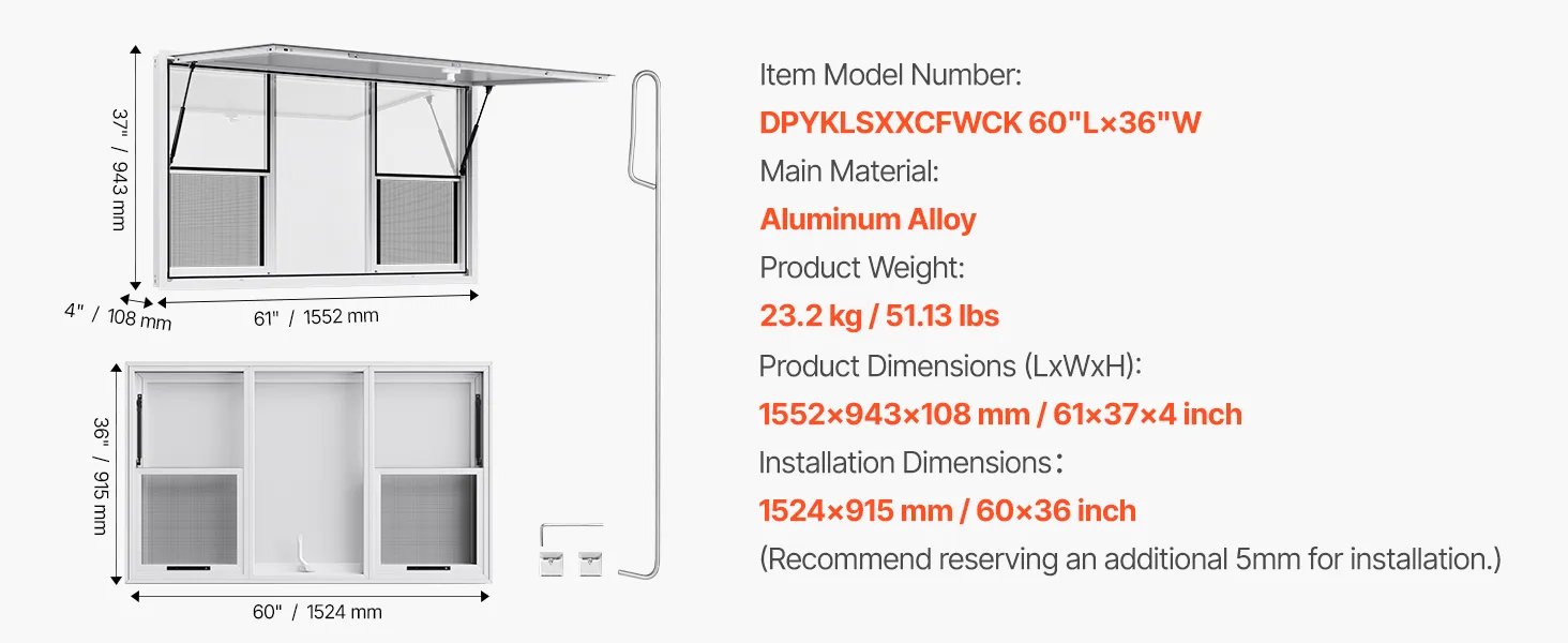 Otázka 1: Sú rozmery okna presné? Zmestí sa do môjho potravinového vozíka/pultíka?A1: Prísna kontrola rozmerov! Inštalačný rozmer rámu okna je 1524x915 mm / 60x36 palcov, vhodný pre štandardné otvory potravinového vozíka/pultíka. Pred kúpou si prosím zmerajte svoj inštalačný priestor.Q2: Je akrylát (PMMA) náchylný na praskanie alebo poškriabanie?A2: Vysoko odolný! Modernizovaný 4 mm akryl PMMA ponúka odolnosť voči nárazom vyššiu ako bežné sklo, dokáže odolať nárazom od potravinových vozíkov a náročným podmienkam, ako je vysoké teplo a olejové výpary.Q3: Dokážu hydraulické tyče stabilne podoprieť uhol otvorenia 85°?A3: Dvojité hydraulické tyče poskytujú silnú oporu! Vďaka použitiu hydraulických tyčí série 420 (zdvih 150 mm) sa okno otvára a zatvára hladko a môže zostať zavesené v akomkoľvek uhle - ideálne pre scenáre častého používania.Q4: Sú uzamykacie body náchylné na hrdzavenie?A4: Pozinkovaná antikorózna úprava! Uzamykacie body majú povrchovú úpravu zo zinkovej zliatiny a prešli 72-hodinovým testom soľnou hmlou, čím ponúkajú lepšiu odolnosť proti korózii ako bežné zámky na dlhodobé používanie v exteriéri bez obáv.Q5: Obsahuje zástenu? Ako ho môžem čistiť?A5: Navrhnuté na jednoduchú údržbu! Táto verzia obsahuje sieťku, ktorá účinne zabraňuje prenikaniu hmyzu. Povrch okna možno čistiť vlhkou handričkou. Rám má bielu práškovú povrchovú úpravu, ktorá odoláva olejovým škvrnám.