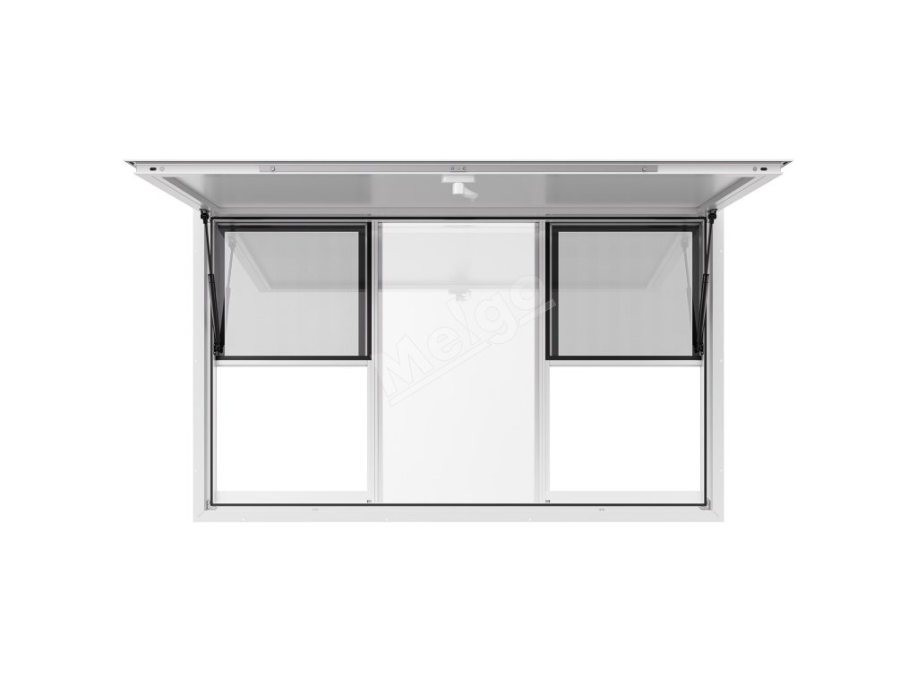 Predajné okno 152×92 cm, hliník, 6 posuvných okien, otváranie 85°