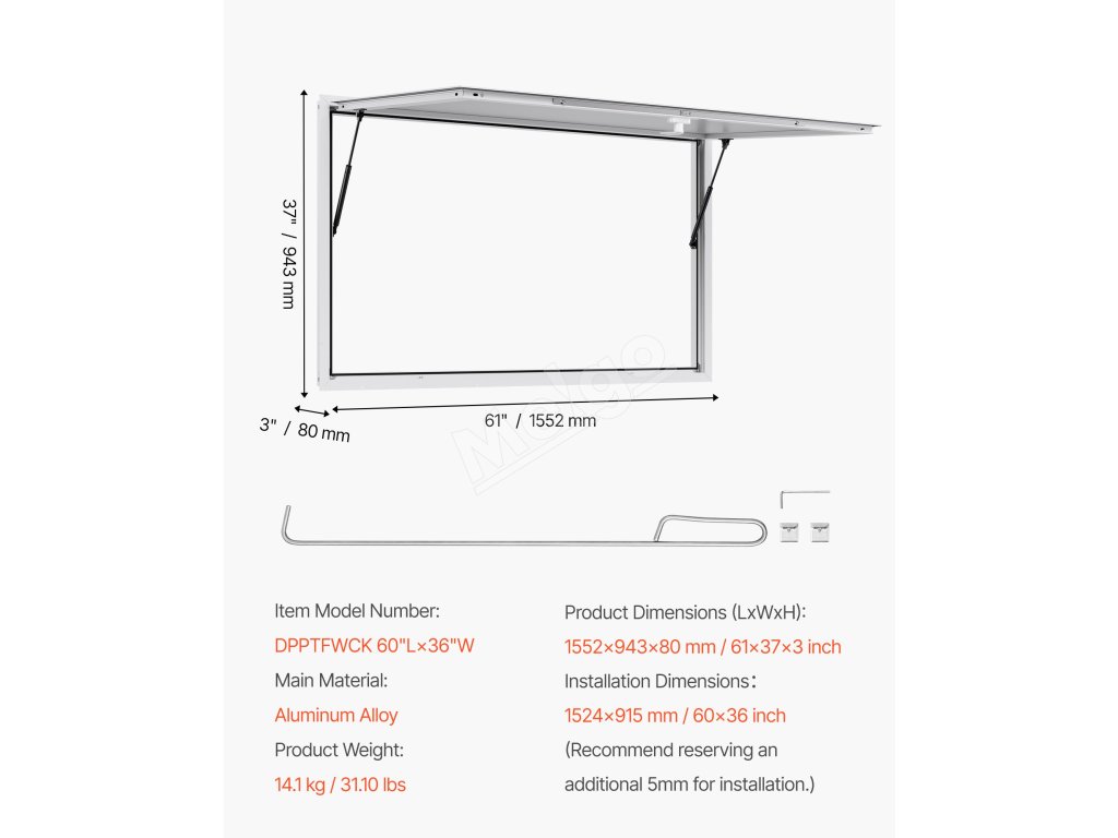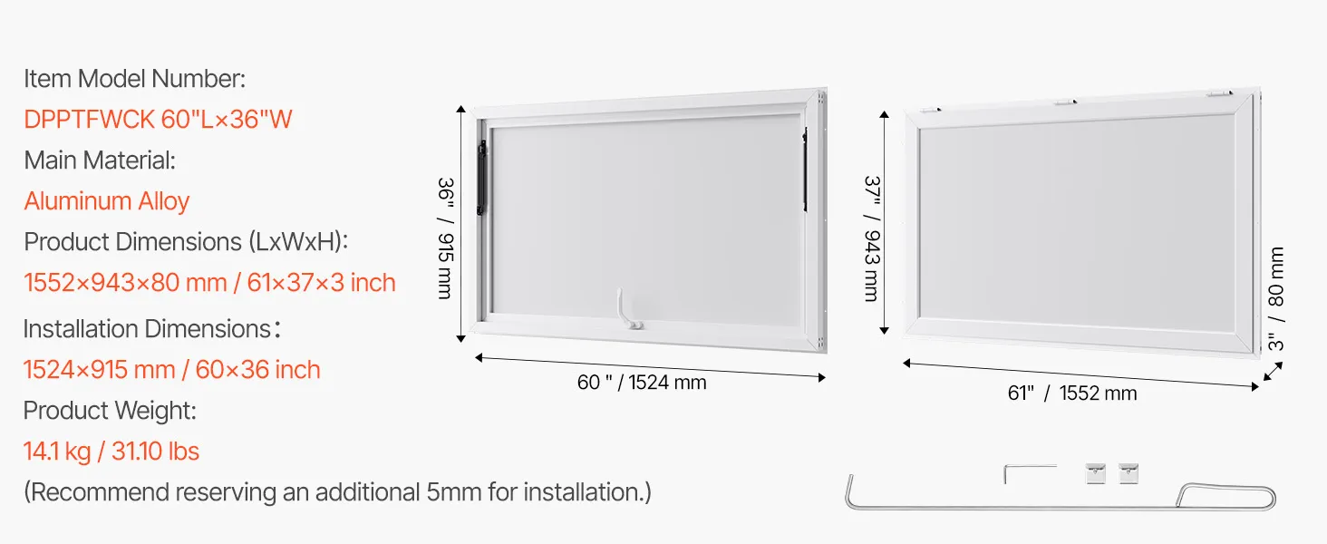 | Inštalačné rozmery | 1524x915 mm / 60x36 palcov |