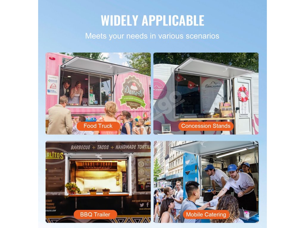 Všestranne použiteľné na viacerých scénach vrátane vozíkov s občerstvením, koncesionárskych stánkov, jedálenských vozňov, prívesov na grilovanie a mobilných reštauračných vozidiel.