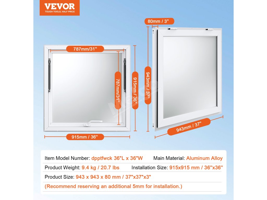 Servisné okno 36×36" hliníkový rám, výklopné do 85° s hákom pre stánky