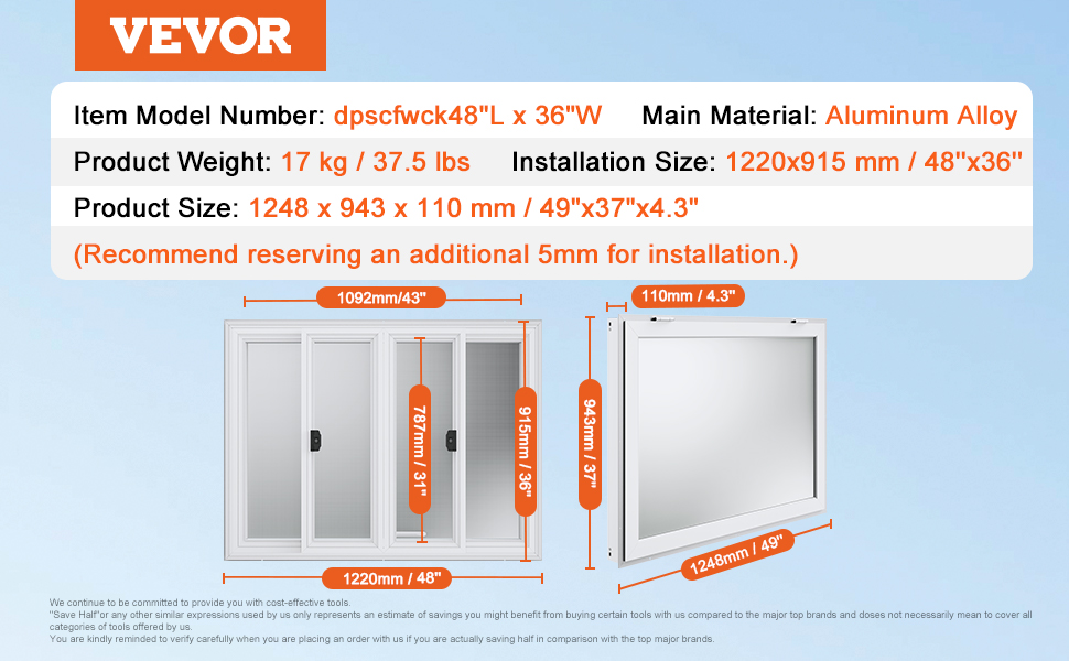 | Inštalačná veľkosť | 1220x915 mm / 48x36 palcov |
