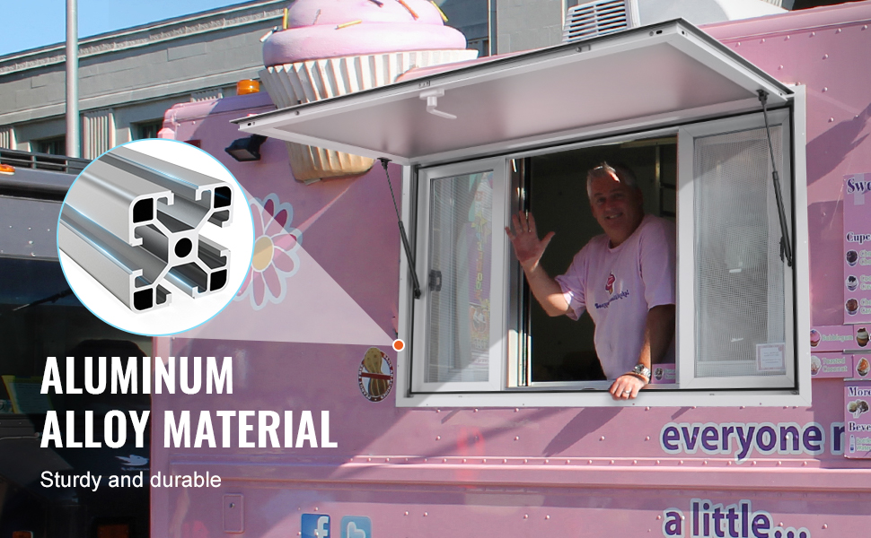 Servisné okno 48×36" pre food truck, 4 posuvné okná, otváranie do 85°