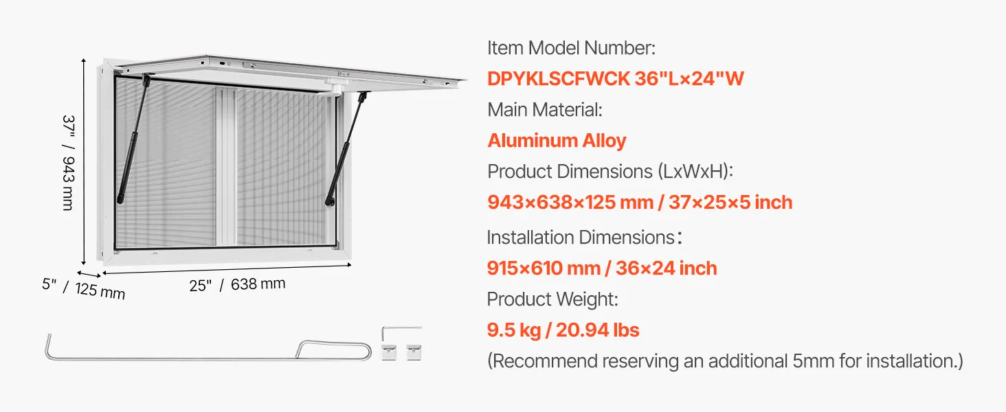 Otázka 1: Sú rozmery okna presné? Zmestí sa do môjho vozíka/pultíka s potravinami?A1: Prísna kontrola rozmerov! Inštalačný rozmer rámu okna je 915x610 mm / 36x24 palcov, vhodný pre štandardné otvory potravinového vozíka/pultíka. Pred kúpou si prosím zmerajte svoj inštalačný priestor.Q2: Je akryl (PMMA) náchylný na praskanie alebo poškriabanie?A2: Vysoko odolný! Modernizovaný 4 mm akryl PMMA ponúka odolnosť voči nárazom vyššiu ako bežné sklo, dokáže odolať nárazom od potravinových vozíkov a drsným prostrediam, ako je vysoké teplo a olejové výpary.Q3: Dokážu hydraulické tyče stabilne podoprieť uhol otvorenia 85°?A3: Dvojité hydraulické tyče poskytujú silnú oporu! Vďaka použitiu hydraulických tyčí série 420 (zdvih 150 mm) sa okno otvára a zatvára hladko a môže zostať zavesené v akomkoľvek uhle - ideálne pre scenáre častého používania.Q4: Sú uzamykacie body náchylné na hrdzavenie?A4: Pozinkovaná antikorózna úprava! Uzamykacie body majú povrchovú úpravu zo zinkovej zliatiny a prešli 72-hodinovým testom soľnou hmlou, čím ponúkajú lepšiu odolnosť proti korózii ako bežné zámky na dlhodobé používanie v exteriéri bez obáv.Q5: Obsahuje zástenu? Ako ho môžem čistiť?A5: Navrhnuté na jednoduchú údržbu! Táto verzia obsahuje sieťku, ktorá účinne zabraňuje prenikaniu hmyzu. Povrch okna možno čistiť vlhkou handričkou. Rám má bielu práškovú povrchovú úpravu, ktorá odoláva olejovým škvrnám.