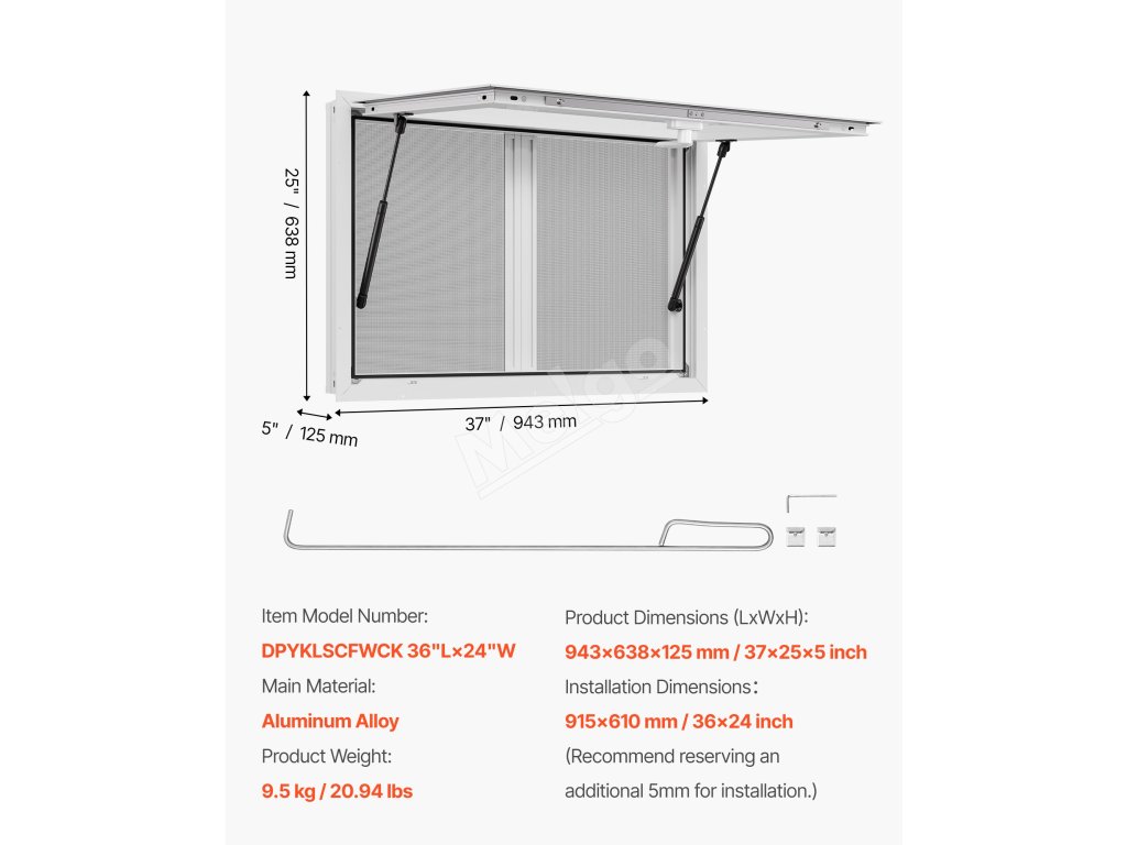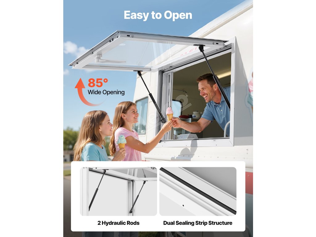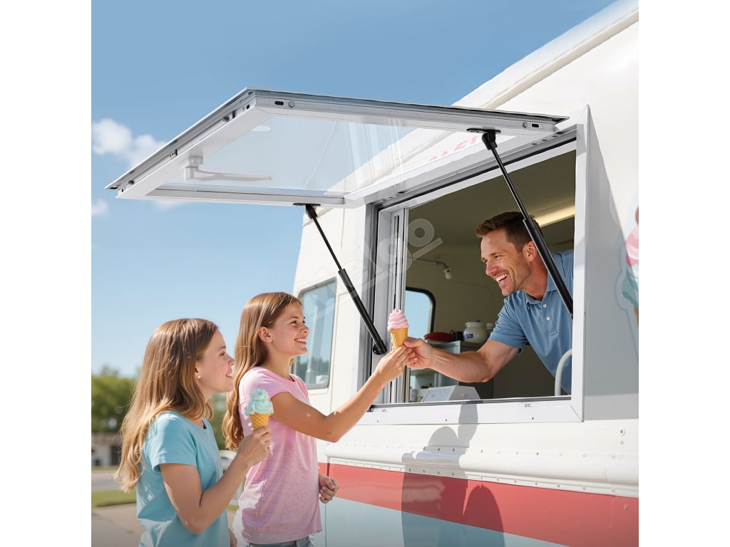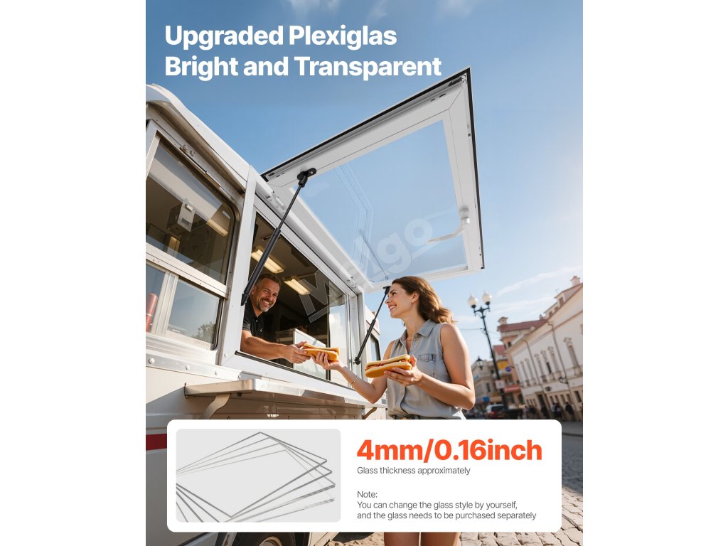 Otázka 1: Sú rozmery okna presné? Zmestí sa do môjho vozíka/pultíka s potravinami?A1: Prísna kontrola rozmerov! Inštalačný rozmer rámu okna je 915x610 mm / 36x24 palcov, vhodný pre štandardné otvory potravinového vozíka/pultíka. Pred kúpou si prosím zmerajte svoj inštalačný priestor.Q2: Je akryl (PMMA) náchylný na praskanie alebo poškriabanie?A2: Vysoko odolný! Modernizovaný 4 mm akryl PMMA ponúka odolnosť voči nárazom vyššiu ako bežné sklo, dokáže odolať nárazom od potravinových vozíkov a drsným prostrediam, ako je vysoké teplo a olejové výpary.Q3: Dokážu hydraulické tyče stabilne podoprieť uhol otvorenia 85°?A3: Dvojité hydraulické tyče poskytujú silnú oporu! Vďaka použitiu hydraulických tyčí série 420 (zdvih 150 mm) sa okno otvára a zatvára hladko a môže zostať zavesené v akomkoľvek uhle - ideálne pre scenáre častého používania.Q4: Sú uzamykacie body náchylné na hrdzavenie?A4: Pozinkovaná antikorózna úprava! Uzamykacie body majú povrchovú úpravu zo zinkovej zliatiny a prešli 72-hodinovým testom soľnou hmlou, čím ponúkajú lepšiu odolnosť proti korózii ako bežné zámky na dlhodobé používanie v exteriéri bez obáv.Q5: Obsahuje zástenu? Ako ho môžem čistiť?A5: Navrhnuté na jednoduchú údržbu! Táto verzia obsahuje sieťku, ktorá účinne zabraňuje prenikaniu hmyzu. Povrch okna možno čistiť vlhkou handričkou. Rám má bielu práškovú povrchovú úpravu, ktorá odoláva olejovým škvrnám.