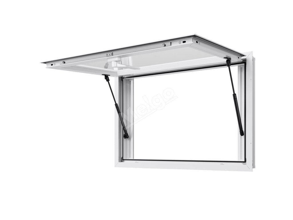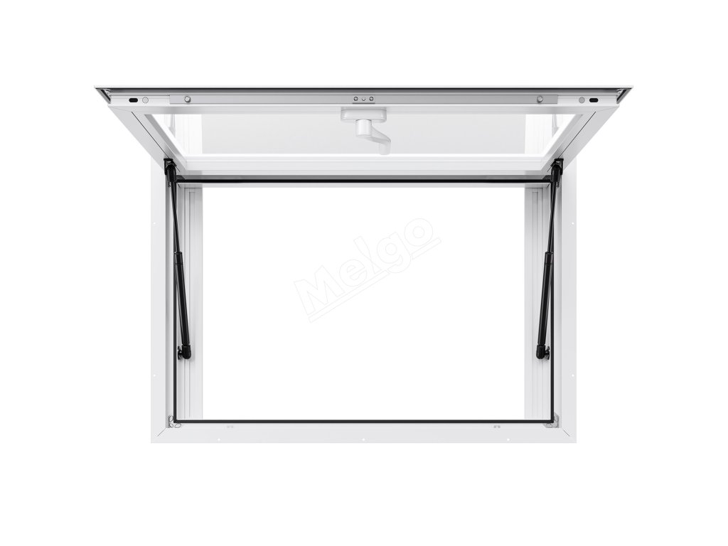 Výdajné okno hliníkové 92×61 cm, 2 posuvné okná, otváranie do 85°