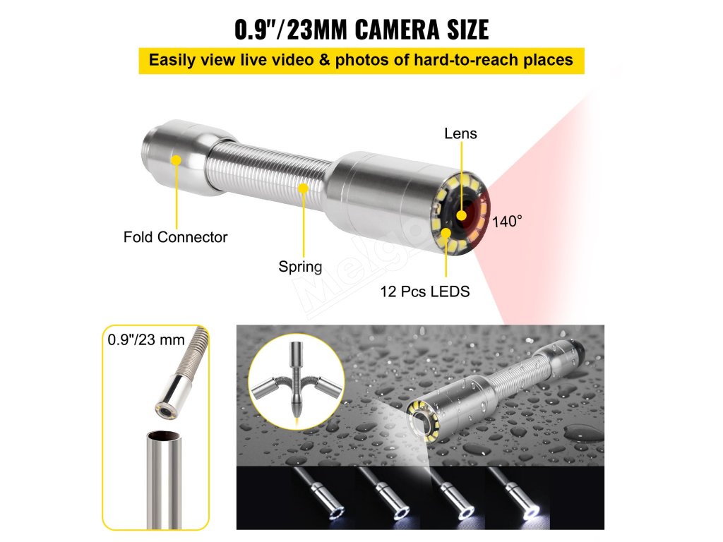 Inspekčná kamera na káble a potrubia 65.6FT vodotesná s 8G SD kartou