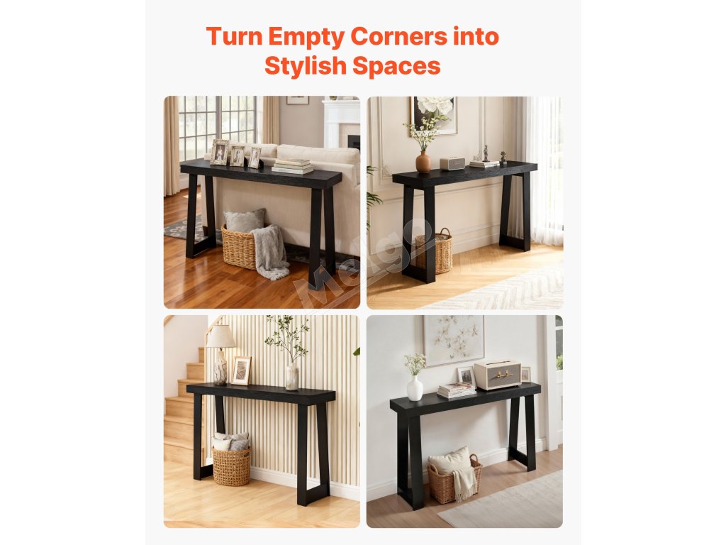 Náš úzky stolík za pohovku má stolovú dosku zo zhrubnutej drevotriesky. Poskytuje pevnú oporu pre malé spotrebiče a náčinie, ako sú kávovary, alebo vaše obľúbené dekoratívne obrazy a fotorámčeky.