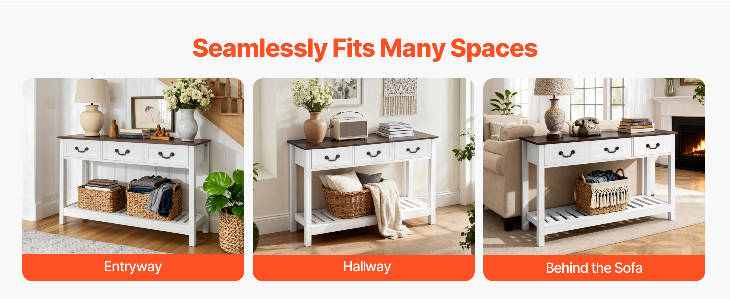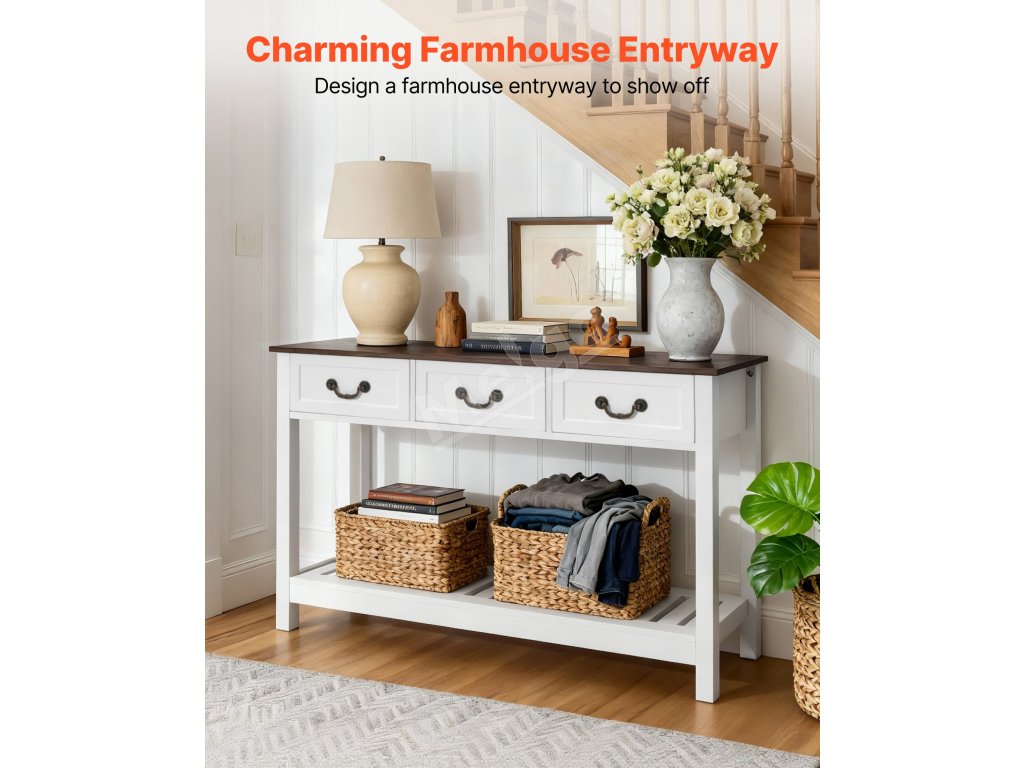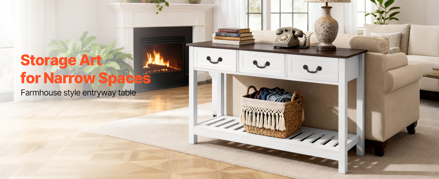 Tento rozkladací stolík v štýle farmárskej konzoly, navrhnutý v štíhlom a podlhovastom tvare, sa hodí do úzkych priestorov. Nezaberá drahocennú plochu predsiene alebo obývačky a poskytuje úložný priestor aj priestor na vystavenie vašich nevyhnutných vecí.