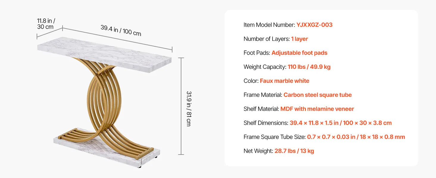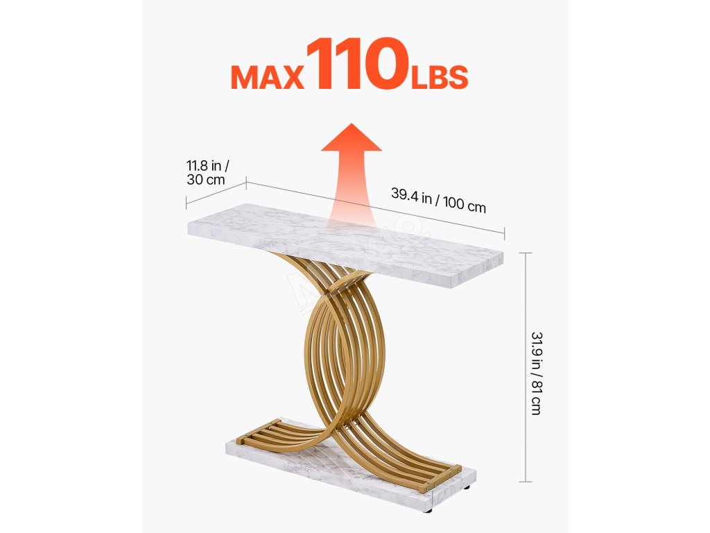 Úzky konzolový stôl za pohovku 39.4 inches, 1 polica, kovový rám