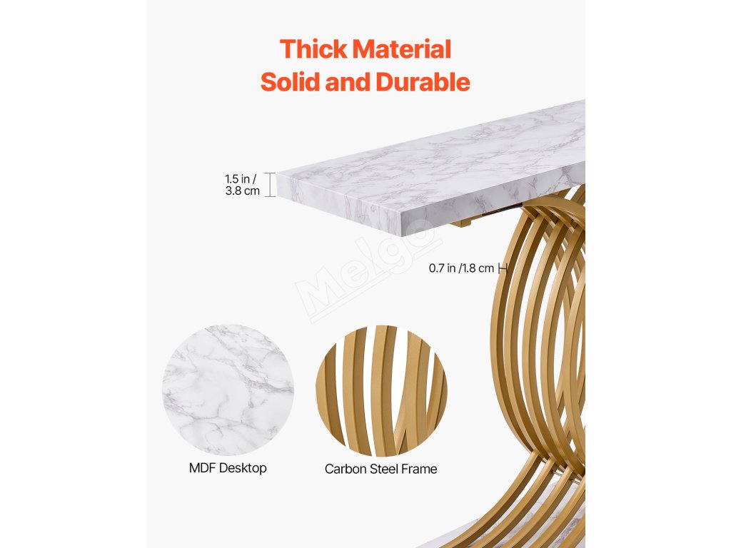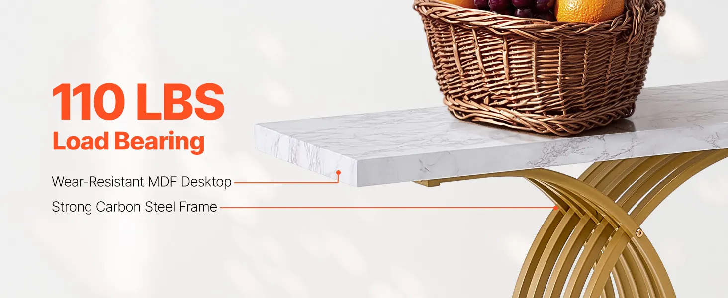 Tento úzky rozkladací stolík je vyrobený z hrubého dreva MDF a robustného kovového rámu a je odolný voči hmotnosti až 110 libier (49,9 kg). Je navrhnutý tak, aby vydržal každodenné používanie a stále vyzeral skvele.