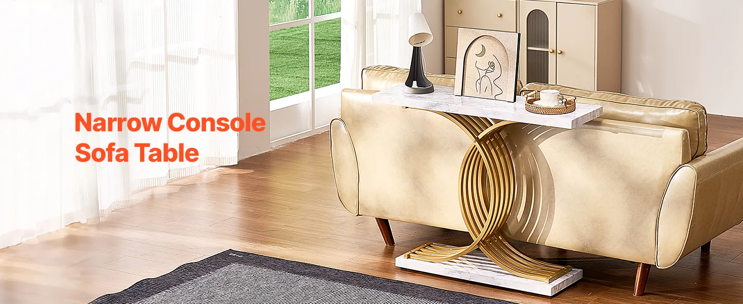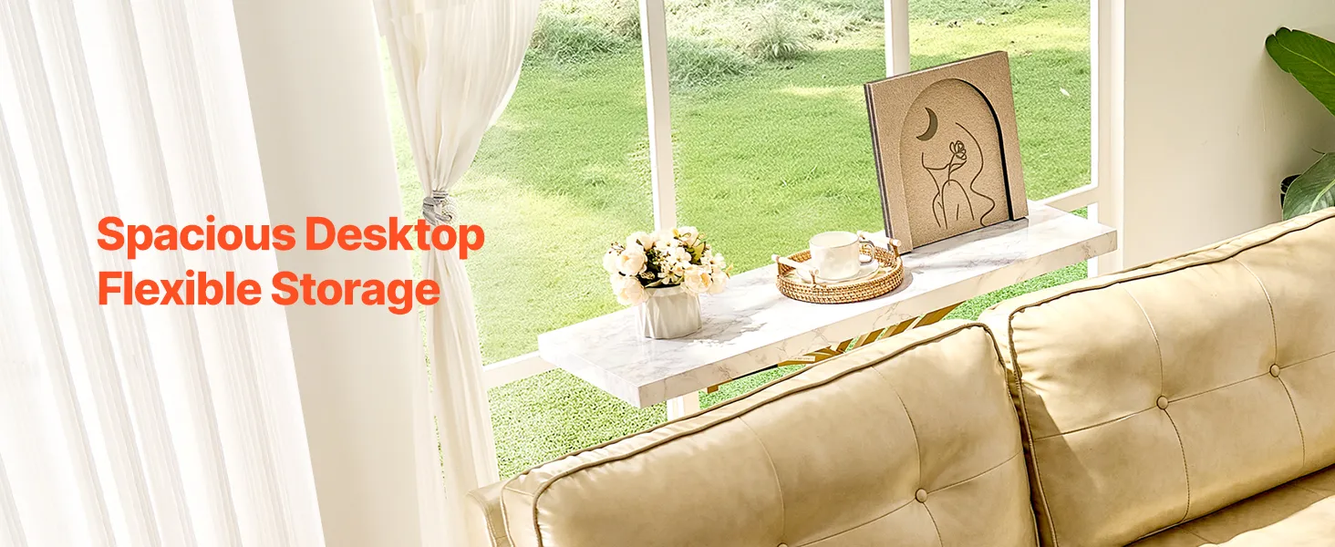 Náš stolík za pohovku má priestrannú dosku, ktorá je ideálna na vystavenie obľúbených dekorácií, umeleckých diel alebo rodinných fotografií a na odkladanie predmetov, ako je telefón a notebook.