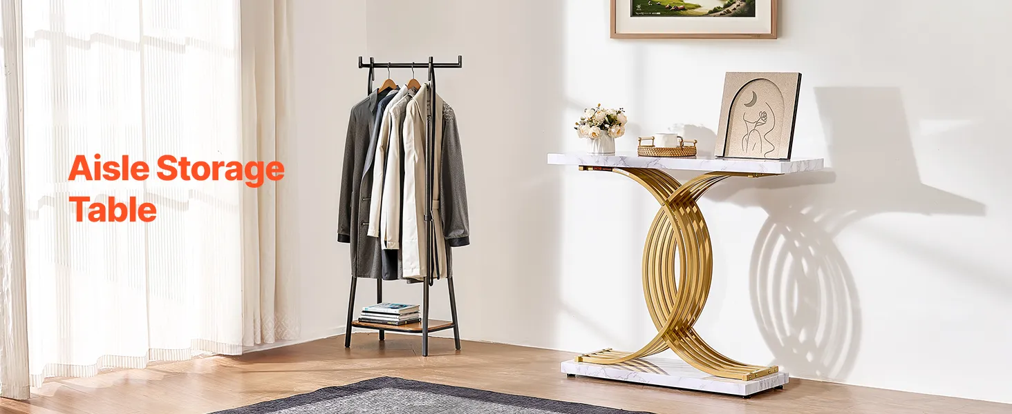 Máte už dosť nevyužitých rohov? Tento úzky konzolový rozkladací stolík sa ideálne hodí do stiesnených priestorov a ponúka miesto na telefóny, dekorácie, kľúče, klobúky a ďalšie veci, vďaka čomu bude váš každodenný život organizovanejší a pohodlnejší.