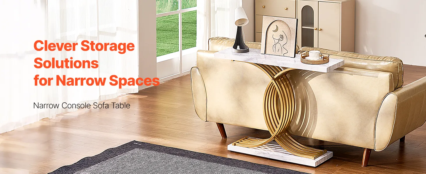 Tento úzky konzolový rozkladací stolík na pohovku sa vďaka svojim kompaktným rozmerom dá ľahko umiestniť do úzkych medzier alebo za pohovku a poskytuje úložný a výstavný priestor na rôzne predmety bez toho, aby ste mrhali cenným priestorom na podlahe.