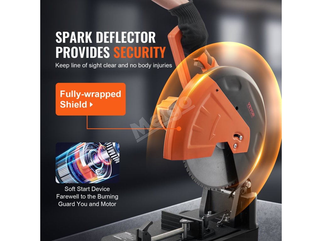 Vďaka úplne zabalenému ochrannému krytu proti iskrám štít automaticky klesne a úplne obklopí pílový kotúč, keď sa píla zdvihne nahor, čo dokáže lepšie zachytiť a odkloniť nečistoty.