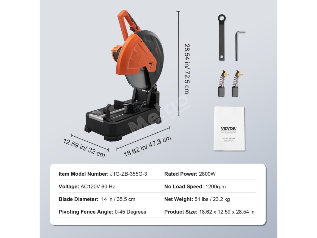 Odrezávacia píla na kov 35.6 cm na suché rezanie s nastavením 45°