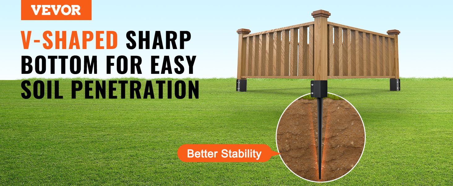 Tento hrot na plotové stĺpiky má dno v tvare písmena V, ktoré svojím ostrým tvarom bez námahy preniká do zeme, čím zabezpečuje pohodlie a rýchlosť.