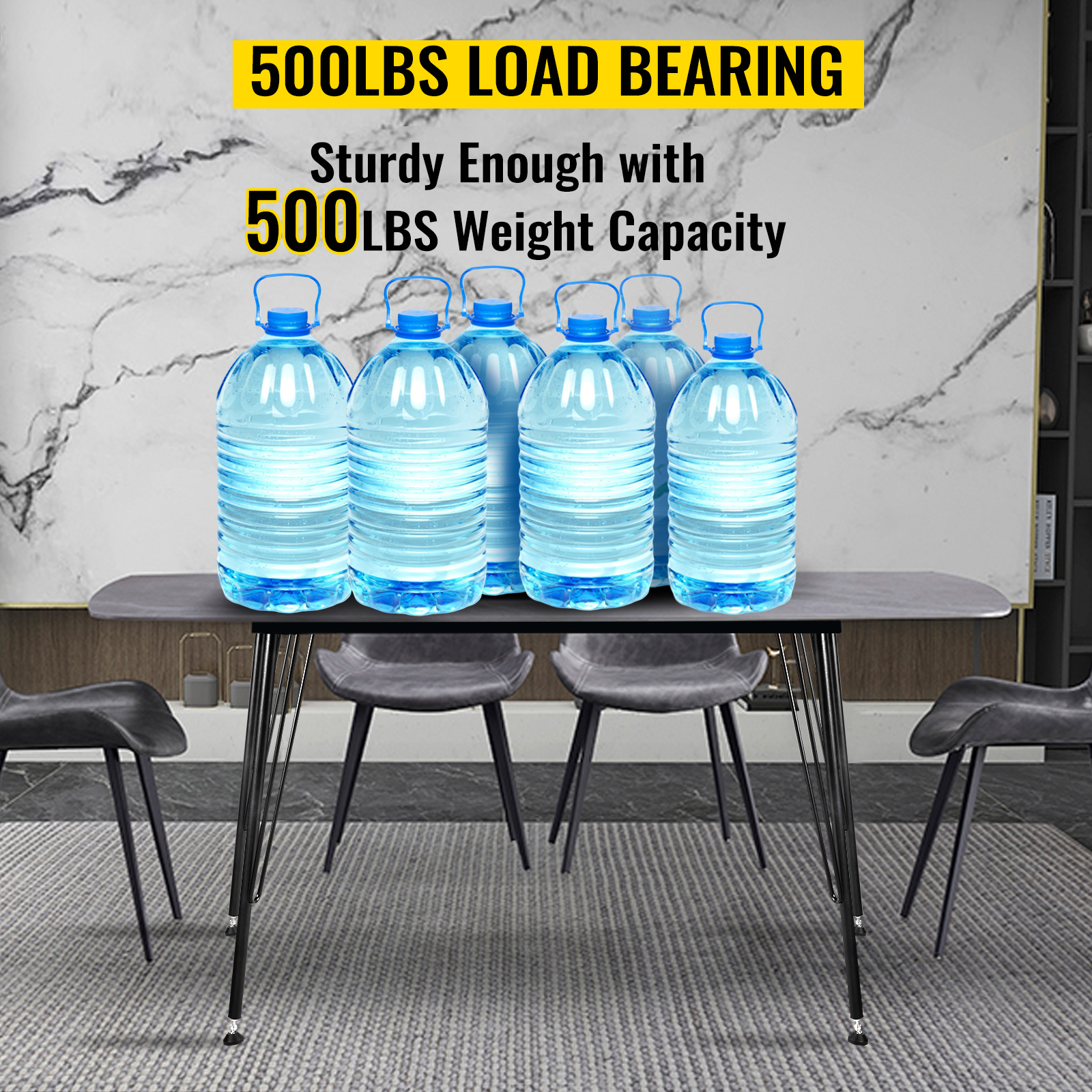 Nohy stola sú vyrobené z robustnej ocele, ktorá sa nedá ľahko deformovať a znesie značnú hmotnosť. Povrch je spracovaný matným remeslom, aby sa zabránilo hrdzaveniu a poškriabaniu. Má dlhú životnosť.
