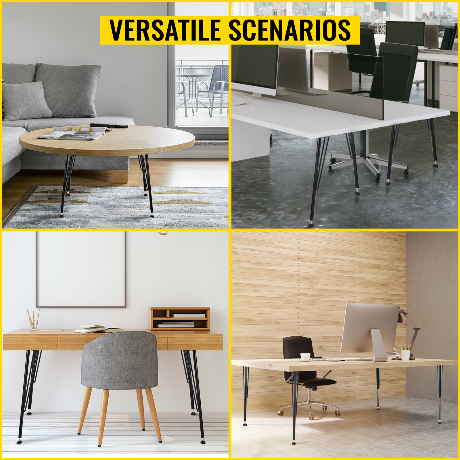 Kovové nohy nábytku sú veľmi vhodné pre rodinných kutilov na vnútorných alebo vonkajších miestach, ako sú jedálenské stoly, čajové stolíky, konferenčné stolíky, záhradné lavice a kancelárske stoly.