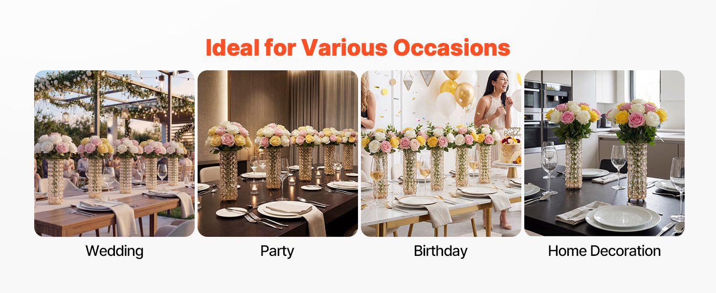 Táto svadobná dekoratívna váza je vhodná na svadby, bankety, sviatky a domáce dekorácie a svojím univerzálnym a koordinovaným vzhľadom dopĺňa rôzne prostredia.