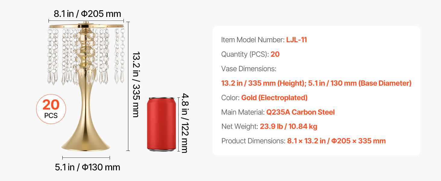 | Výška vázy | 13,2 palca / 335 mm |
