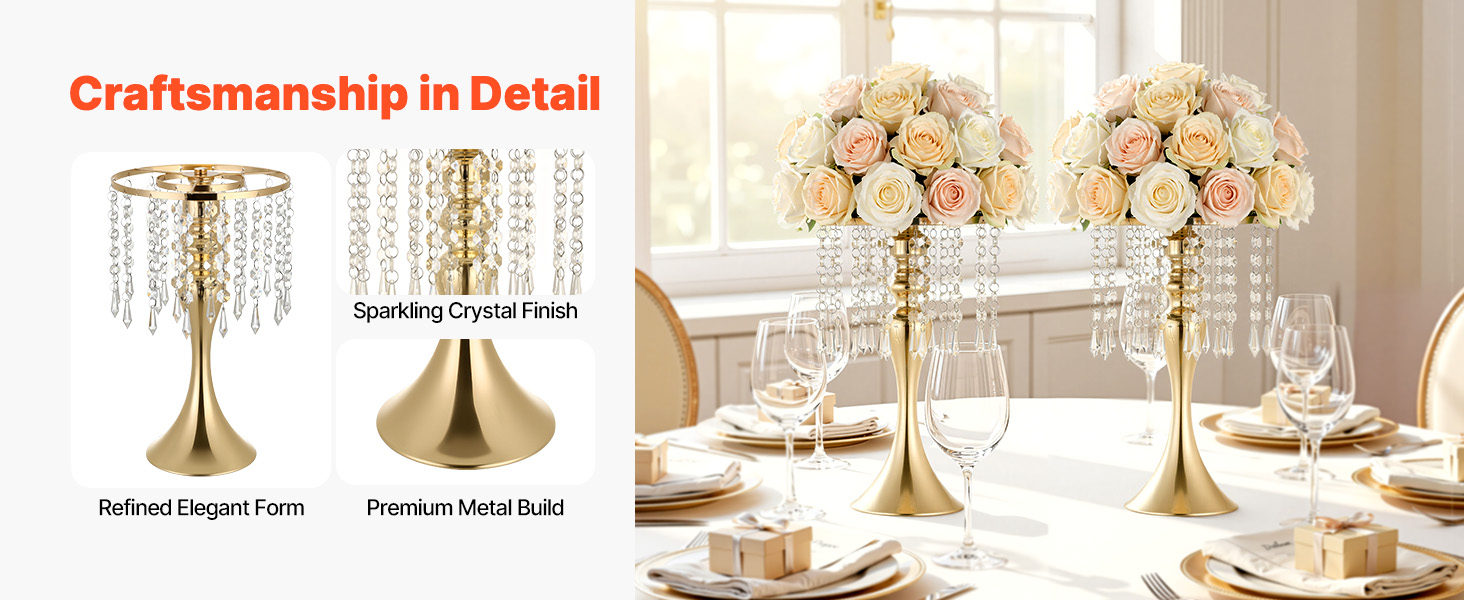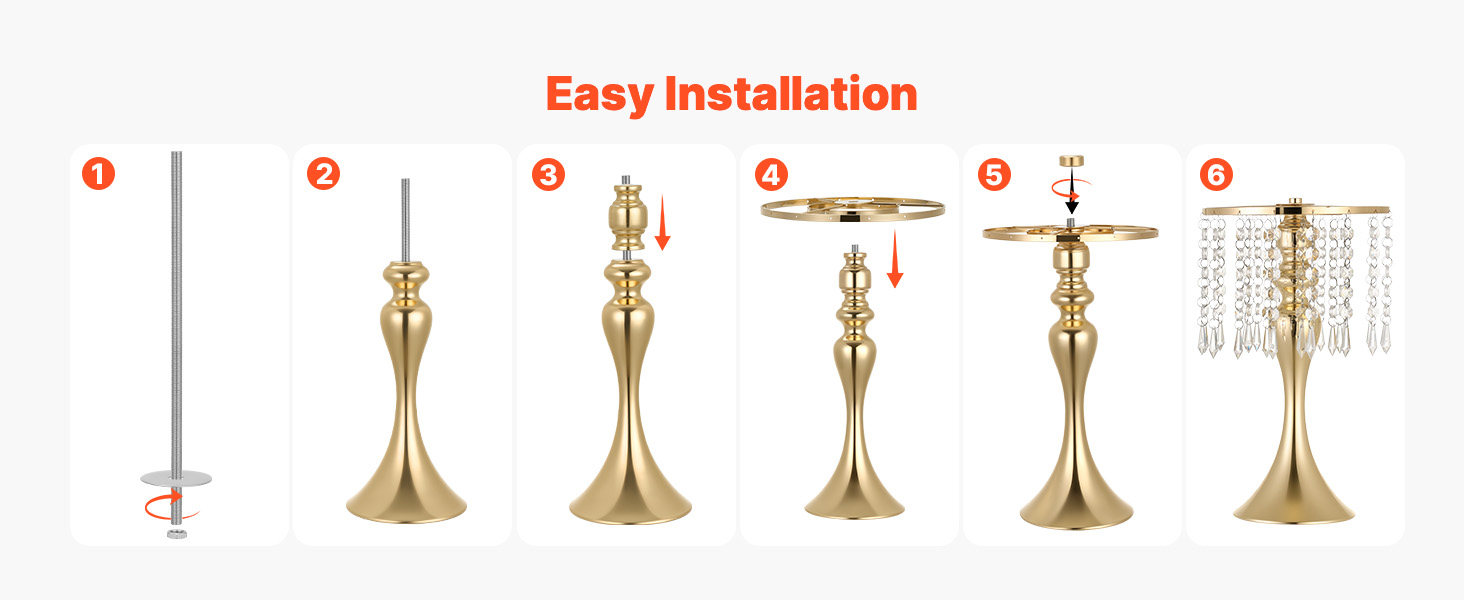 Vďaka predformovanej alebo skrutkovanej konštrukcii sa tento dizajn dá rýchlo zostaviť bez použitia náradia. Táto svadobná váza pomáha udržiavať elegantný vzhľad.