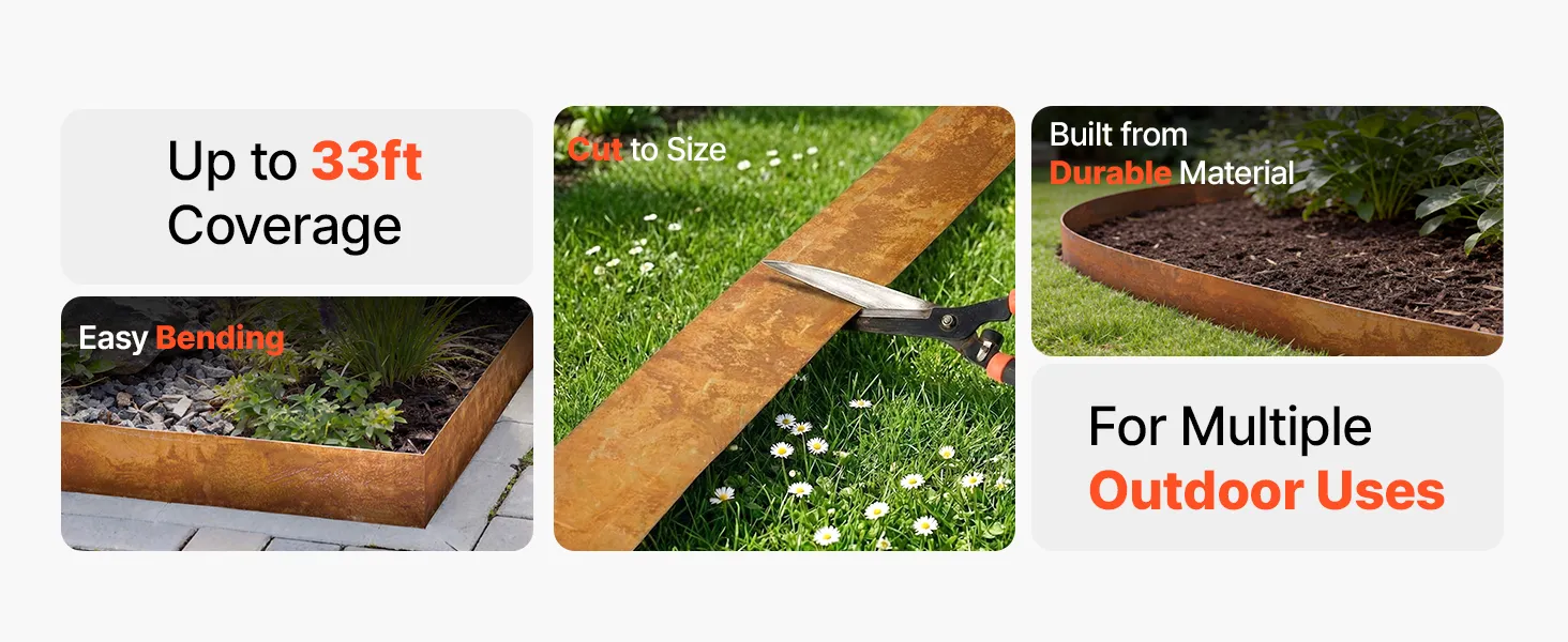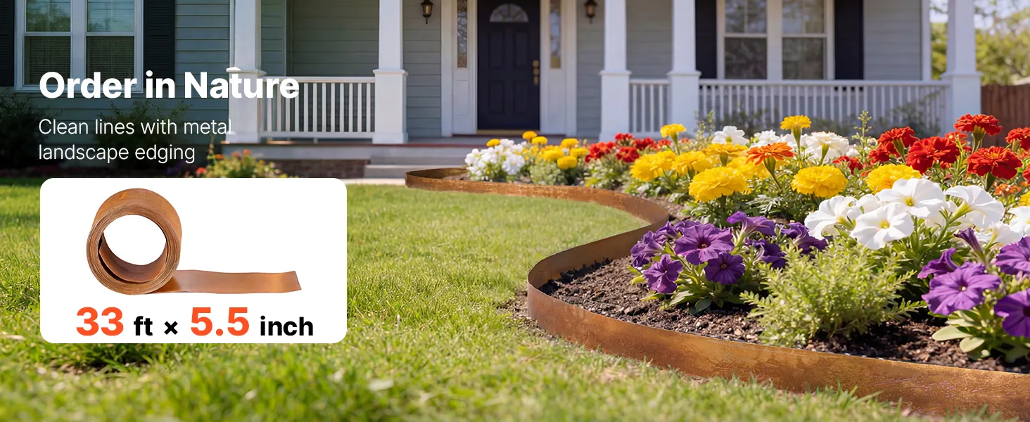 Vaša záhrada bude vďaka kovovým okrajom okamžite vyzerať upravenejšie. Oceľové rolovacie okraje sa ľahko rozvinú, ohýbajú sa a rýchlo inštalujú. Kvetinové záhony a chodníky zostanú upravené s menšou námahou.