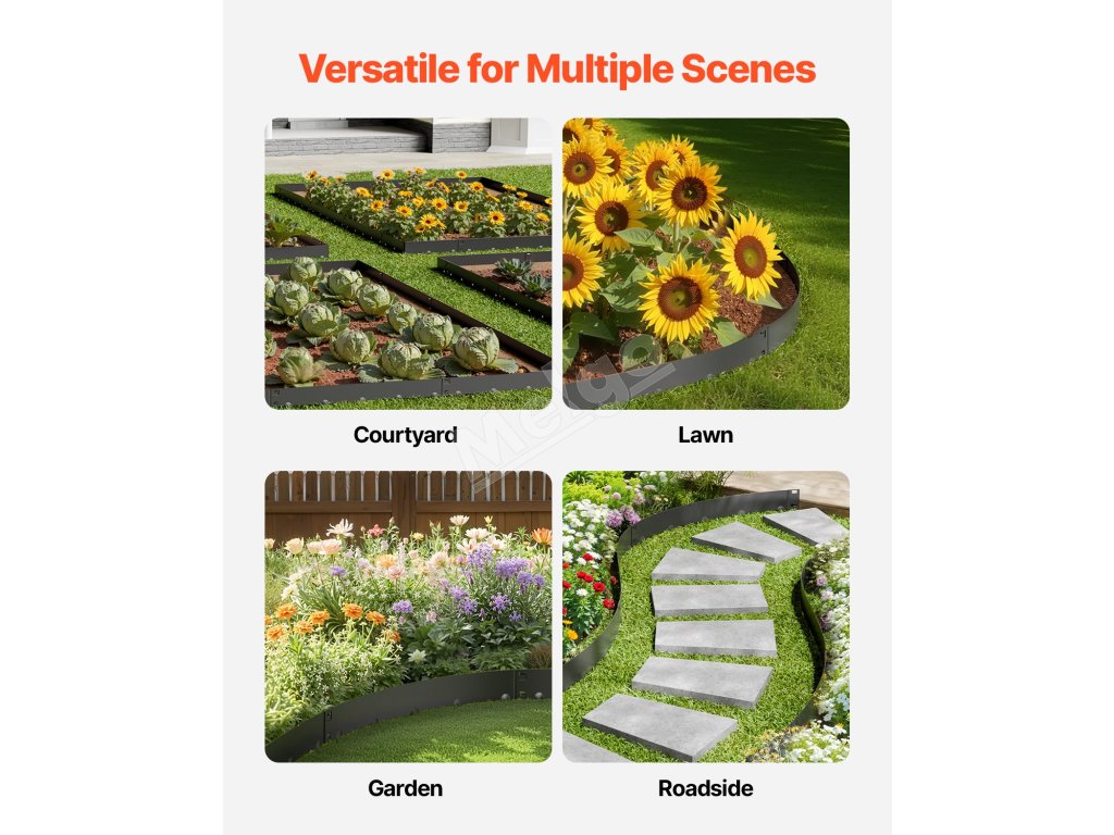 Naše kovové krajinné obruby sú vyrobené z pozinkovanej ocele s práškovým náterom odolným voči korózii a sú konštruované tak, aby odolali podmienkam. Ľahko sa inštaluje a je dostatočne flexibilná na ohýbanie do akéhokoľvek tvaru, takže je ideálna na vytváranie hraníc v záhradách a na okrajoch ciest. Efektívne riešenie na udržanie čistoty vašej krajiny.