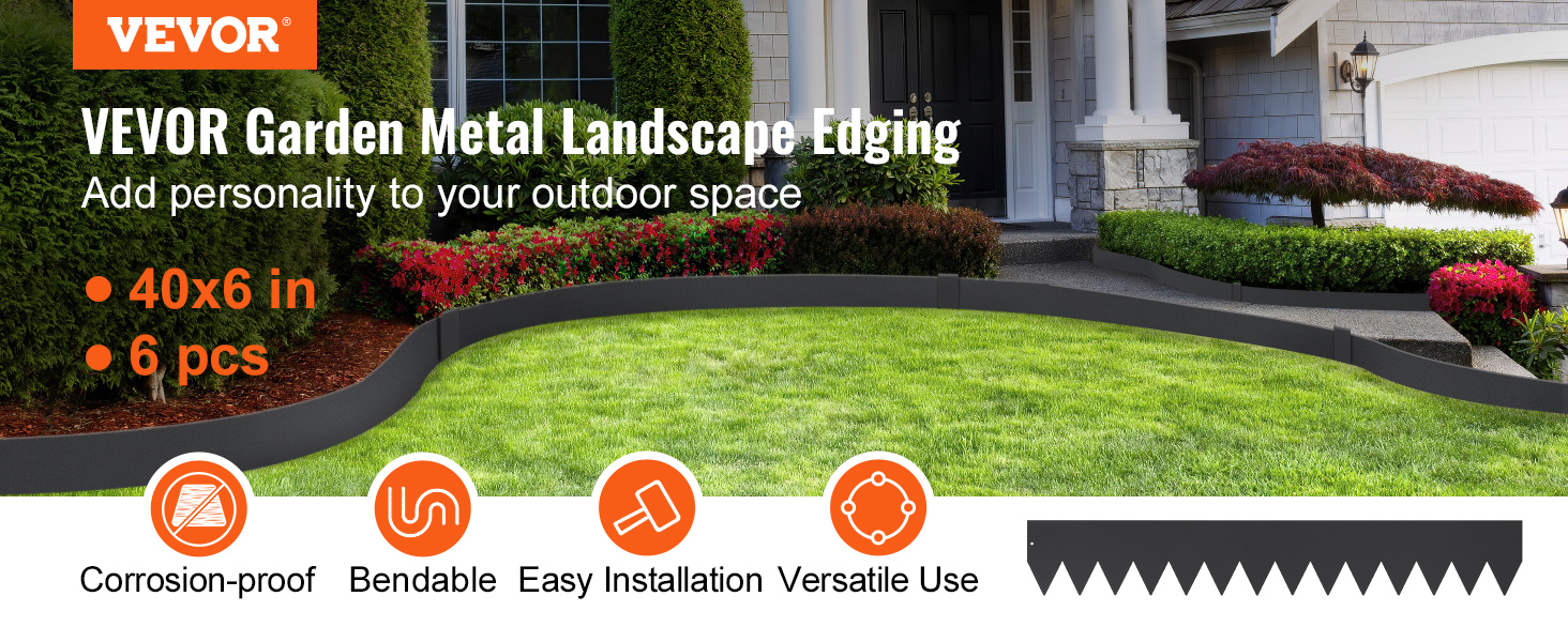 Dostanete 6 ks krajinných trávnikových obrub, 8 upevňovacích svoriek a pár montážnych rukavíc. Každá ohrádka má rozmery 40 × 6 palcov a predĺžený hrot uľahčuje jej upevnenie v zemi. Zabraňujú rastu buriny a udržiavajú vašu záhradu upravenú a udržiavanú.