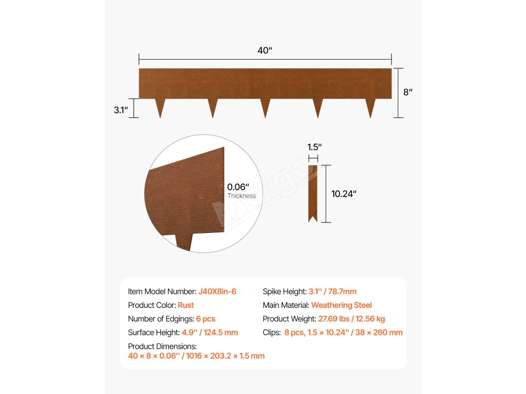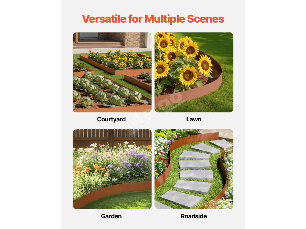 Naše krajinné obruby sú vyrobené z ocele odolnej voči poveternostným vplyvom s práškovým náterom odolným voči korózii a sú konštruované tak, aby odolali podmienkam. Ľahko sa inštaluje a je dostatočne flexibilná na ohýbanie do akéhokoľvek tvaru, takže je ideálna na vytváranie hraníc v záhradách a na okrajoch ciest. Efektívne riešenie na udržanie čistoty vašej krajiny.