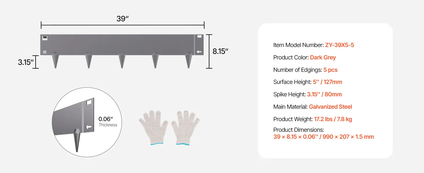 Naše kovové krajinné obruby sú vyrobené z pozinkovanej ocele s práškovým náterom odolným proti korózii a sú konštruované tak, aby odolali podmienkam. Ľahko sa inštaluje a je dostatočne flexibilná na ohýbanie do akéhokoľvek tvaru, takže je ideálna na vytváranie hraníc v záhradách a na okrajoch ciest. Efektívne riešenie na udržanie čistoty vašej krajiny.